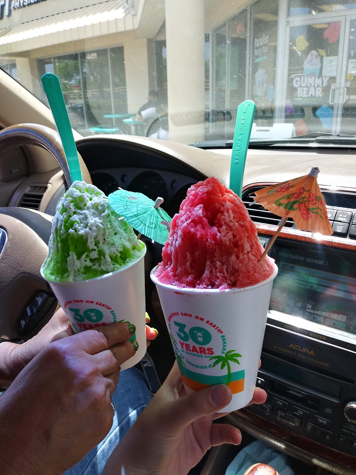 Read moreThis place is amazing! My sister got me hooked! They have so many different flavors, and they have a bunch of different options such as smoothies, iced coffee, and they even have party packs so when you are having a birthday party or fourth of July celebration, you can buy a party pack with comes with everything you need to make your own Bahama Buck's shaved ice! I thought that was really neat! And to top it all off they have snowballs actual snowballs you can buy for a party or just to have fun! You can get a pack of 25 or a pack of 60 that comes in a special cooler. I really thought that was in need idea! Also the staff is incredibly friendly! I love this small touches of the little umbrella and the color changing spoon. On the sizes and pricing are amazing! I get a small one and I cannot even finish that one. I also love that you can add cream or ice cream to your order. All I know I really love this place and it's perfect for summer to cool you down! I usually opt for the tiger's blood, but my husband tried the passion fruit and it was delicious! It's definitely not like any other shaved ice or snow cone places. This is super smooth and they put a lot of flavor! I would definitely recommend this place! My daughter gets a kick out of the umbrellas and the color...