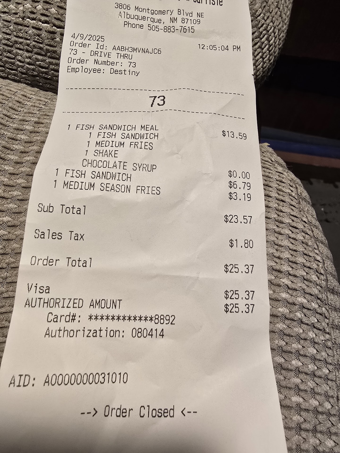 Anyways, thanks to the one employee who actually gave a damn about us, we got our order in for 6 burgers and pulled into one of the parking spots to wait for our food. I'm pretty patient and I understand that the food is made to order, but 25 minutes go by and other patrons who I know ordered after us are all getting their food.