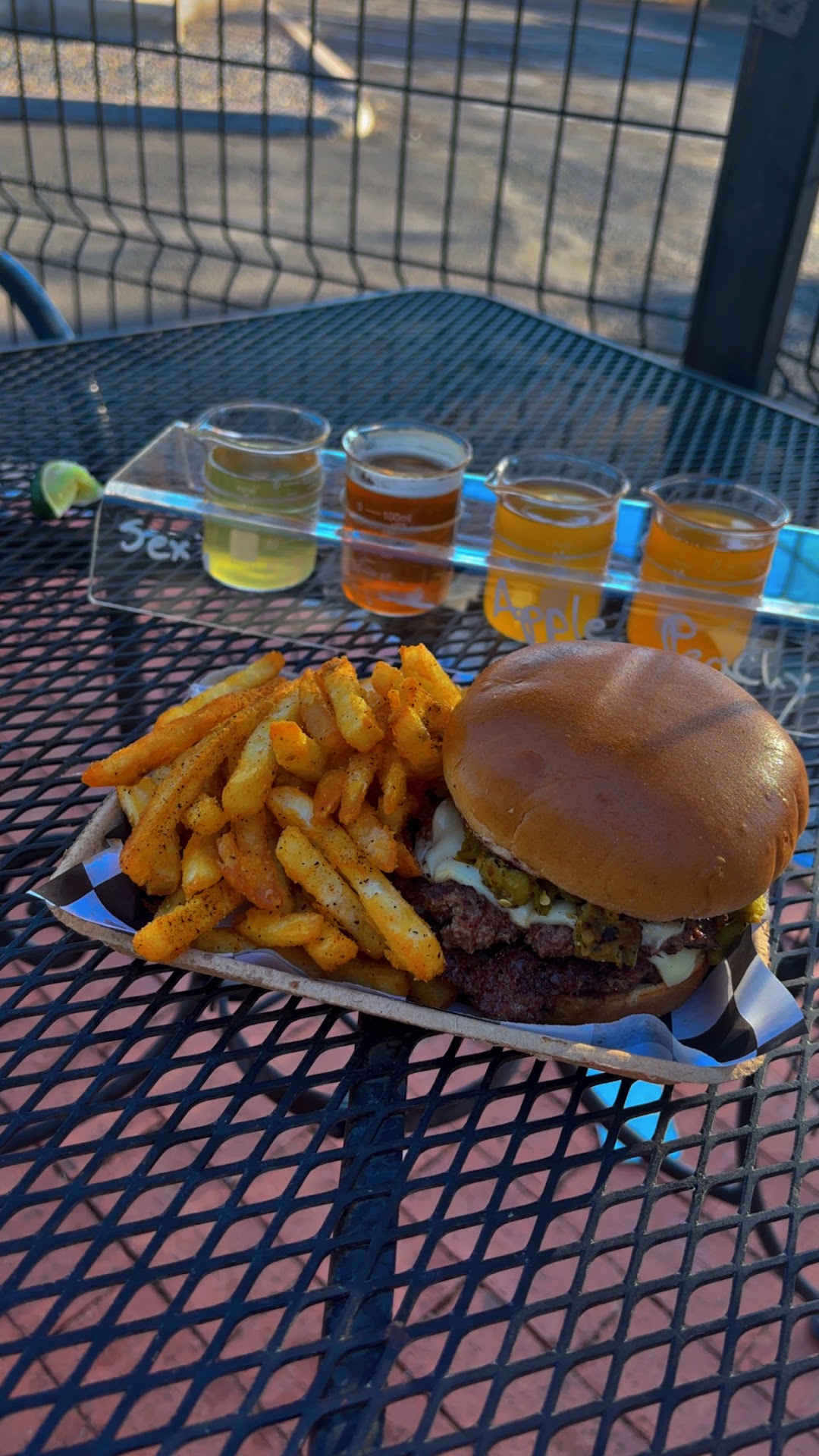 Read moreSitting here having a peach cider. Nectar of the gods! Not sicky sweet, but fruity and flavorful! Very refreshing! Highly recommend it. Mesha took good care of us. We had the smashburgers from the foodtruck.Delcious! These are not greasy. The meat tastes like the" good stuff "we used to get in the "old'days. Nicely cooked. The crunchy fries are out of this world! Highly recommended. You can also stop at "Sprinkles" accross the parking lot for delicious dreamy creamy ice cream. The black cherry has actual cherries in it. Come to...