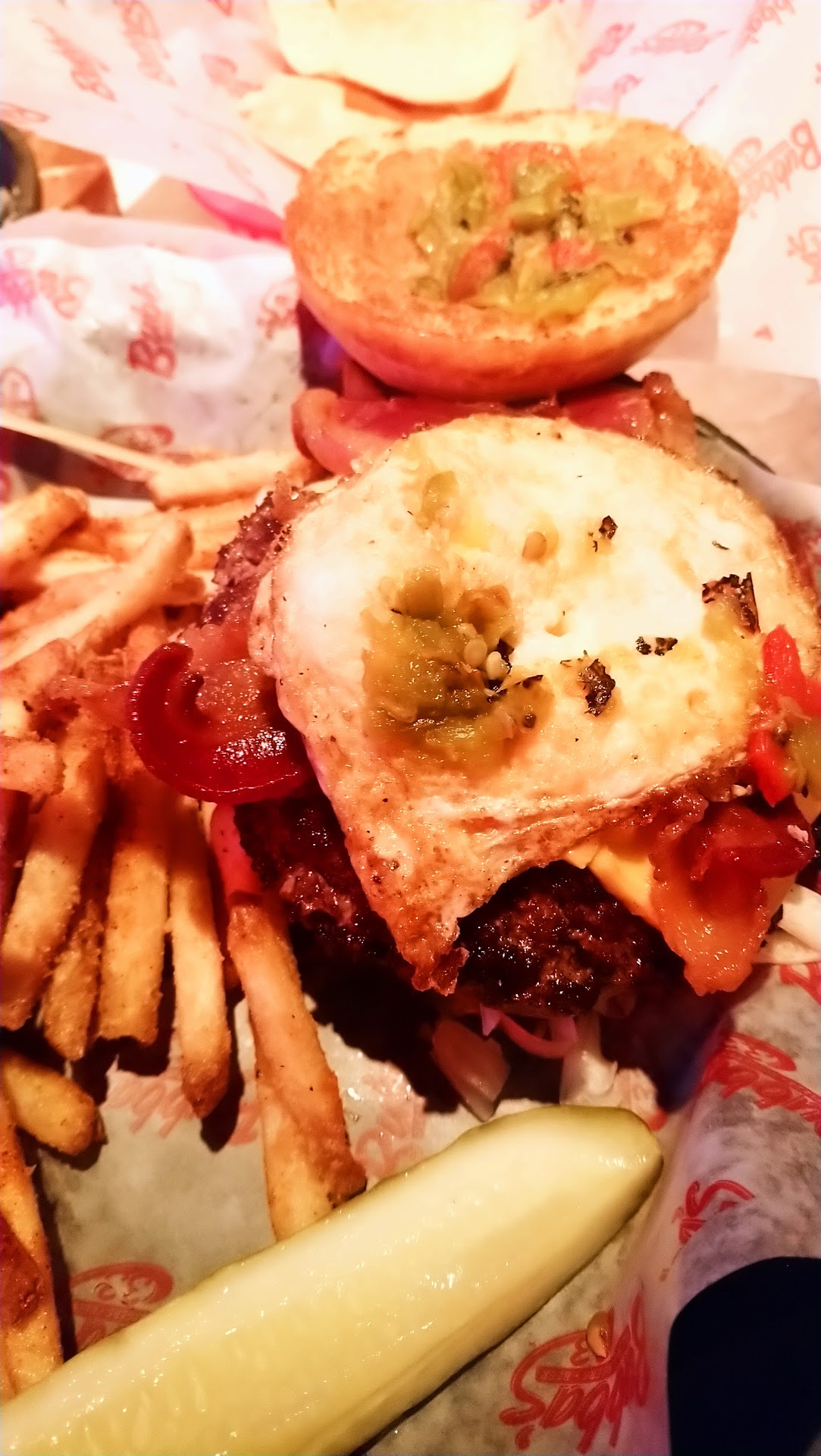 Read moreThis is a corporate sports themed restaurant. It is VERY corporate. The hostess, manager and server all had what were obviously a script that they say to every guest. It was Sunday during football season when my wife and I went and the place was packed. We were told 15-20 min wait, but it was much faster before they had a table ready. There are wall to wall T..V.s all showing sports, and it is very loud in there. My wife and I are not sports fans, so I only gave 3 stars for atmosphere, I wouldn't have minded if the volume wasn't ear splitting. The server greeted us very quickly and had our drinks back so fast. We ordered a queso appetizer and it was also delivered very quickly. It was queso on a cast iron skillet, which made us think it would be super hot, but it wasn't. It tasted good, had chorizo on top and was warm, but it could have been hotter. We decided to order another appetizer instead of a full meal because it was just so frickin loud in there and we chose a 6 piece wings with fries. The fries were right out of the fryer, piping hot, and the wings were as well. Again, the food was delivered with a quickness that was impressive. These wings were delicious. We chose the "hot" flavor of sauce which was mildly spicy for a New Mexican, but the flavor was off the hook. This was not just Frank's sauce, it stuck to the wing more like a glaze, spicy, with a bit of sweet. It wasn't just wings sitting in a puddle of wet red stuff like most places that do just wings. They blew Wing Stop, Bdubs and Hooters out of the water man. The fries were frickin delicious, too, hot AF and spiced with a delightful seasoning. The service was attentive but not overbearing, speedy and friendly. The prices were honestly a bit lower than I would expect. Looking at the menu, the burgers were $15-$19 and came with fries and portions were...