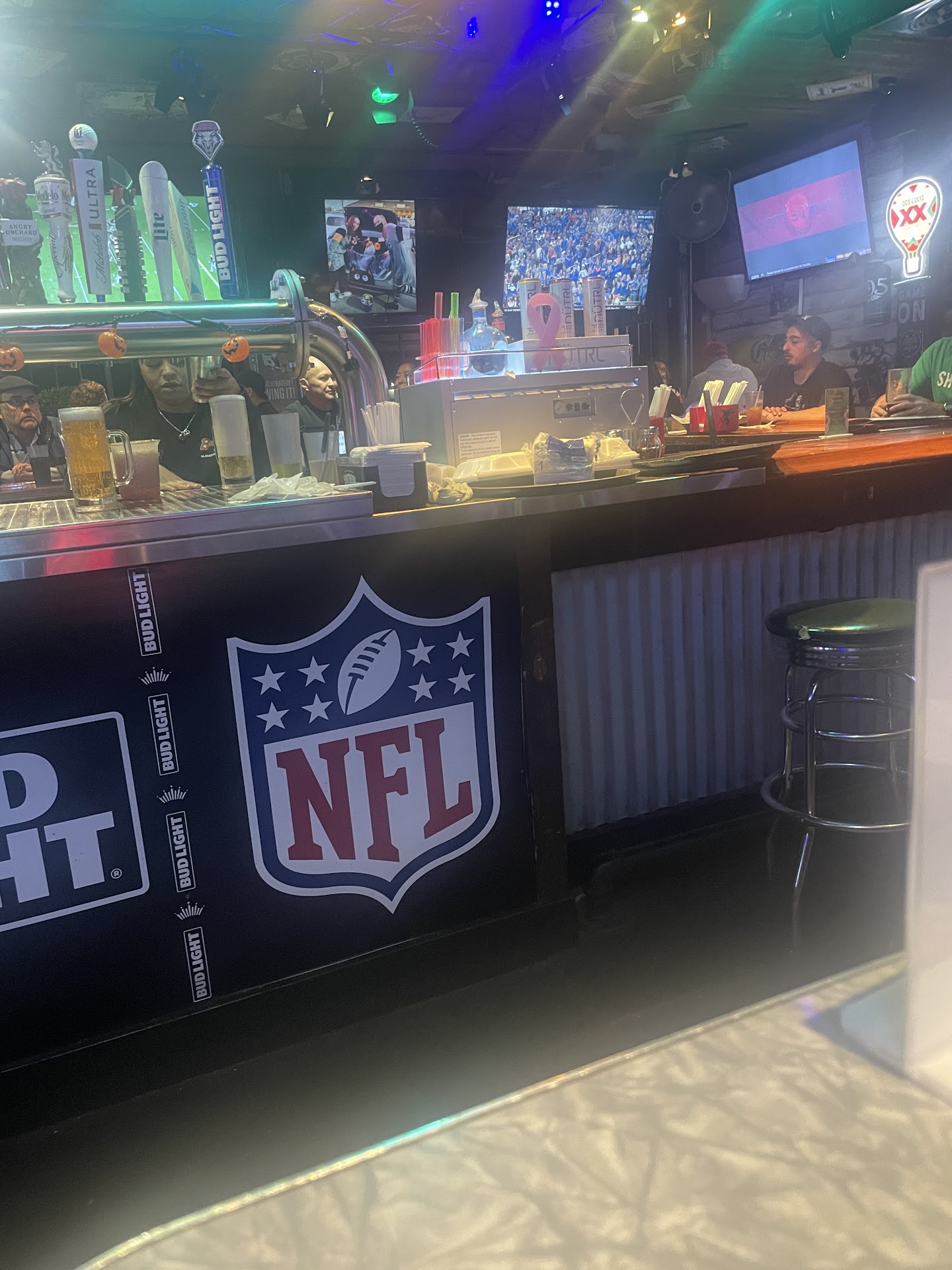 Read moreThis is a corporate sports themed restaurant. It is VERY corporate. The hostess, manager and server all had what were obviously a script that they say to every guest. It was Sunday during football season when my wife and I went and the place was packed. We were told 15-20 min wait, but it was much faster before they had a table ready. There are wall to wall T..V.s all showing sports, and it is very loud in there. My wife and I are not sports fans, so I only gave 3 stars for atmosphere, I wouldn't have minded if the volume wasn't ear splitting. The server greeted us very quickly and had our drinks back so fast. We ordered a queso appetizer and it was also delivered very quickly. It was queso on a cast iron skillet, which made us think it would be super hot, but it wasn't. It tasted good, had chorizo on top and was warm, but it could have been hotter. We decided to order another appetizer instead of a full meal because it was just so frickin loud in there and we chose a 6 piece wings with fries. The fries were right out of the fryer, piping hot, and the wings were as well. Again, the food was delivered with a quickness that was impressive. These wings were delicious. We chose the "hot" flavor of sauce which was mildly spicy for a New Mexican, but the flavor was off the hook. This was not just Frank's sauce, it stuck to the wing more like a glaze, spicy, with a bit of sweet. It wasn't just wings sitting in a puddle of wet red stuff like most places that do just wings. They blew Wing Stop, Bdubs and Hooters out of the water man. The fries were frickin delicious, too, hot AF and spiced with a delightful seasoning. The service was attentive but not overbearing, speedy and friendly. The prices were honestly a bit lower than I would expect. Looking at the menu, the burgers were $15-$19 and came with fries and portions were...