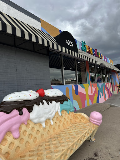 Tucked just off Lomas—north of Nob Hill’s kaleidoscope of coffee shops and vintage shops—Burque Licks doesn’t play by anyone else’s rules. Gone are the tired millennial grays, the sterile minimalism, the faux-artisanal gloom. Instead, this parlor bursts with color, life, and unfiltered excitement. The mood is less “urban rustic” and more “Technicolor joyride.” Think 1950s soda fountain meets Saturday morning cartoon, with a touch of Burque’s signature irreverence. Think Disneyland for your taste buds, if Walt had been raised on Breaking Bad reruns and New Mexico sunsets.