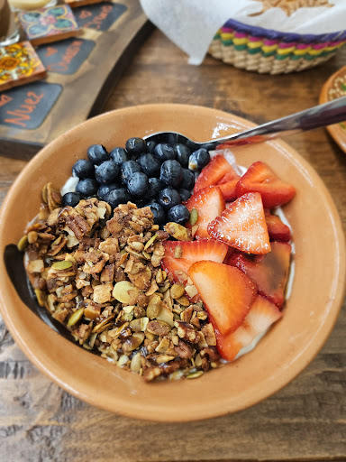 Ā Ā Ā Read moreMy first time coming to this cafe and let me tell you I am blown away. Came here with my husband to try their coffee and pan dulce and were greeted nicely by the two ladies at the counter. We ordered a coffee flight and some other goodies. We both tried the green and red burritos and they were delicious!! I wish I took a photo but just the smell itself was alluring we finished them fast lol. I will say the burritos were a little small for the price but considering the ingredients were of higher quality like the fresh tortillas and tucumcari cheese I would not mind paying that price again for them. They are WORTH IT! The pan dulce was soft and tasted fresh and our Specialty latte flight was yummy we both really enjoyed the Horchata and Churro minis. We got carried away and also ordered a yogurt parfait which was nice and refreshing. Overall the highlight of this place was the burritos. Will definitely be back for some later. The decor is really nice as well and the plates everything is served are beautiful. I believe its a mother and daughter duo running this place...