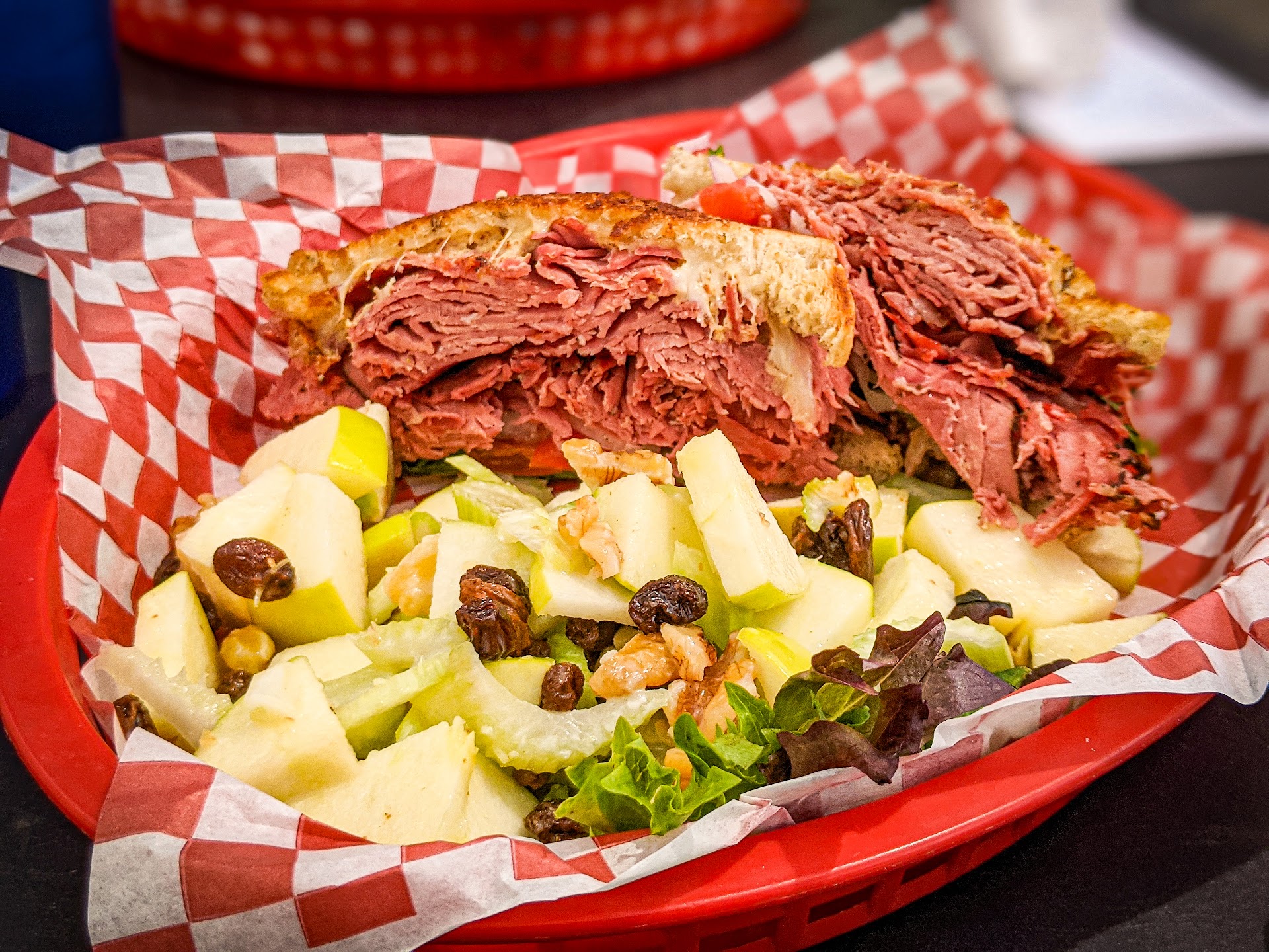 (Downtown location) My coworkers wanted to eat here, but we decided to order online pickup because they close at 2pm. We all ordered online with a 2 dollar service fee. I ordered a beef patty melt with caesar salad and an order of fries. My total came to just over 20 dollars after tax, but I was splurging because I can't afford to eat out much. We arrived 5 minutes after the pickup time and had to wait another 10 minutes or so for our food (which they packed up all together). I should have made sure it was all there, but we were hungry and eager to get back to the office. The wrong names were on the boxes we ordered, but after sorting it out, we were missing a 4 dollar order of fries. I called to see if I could come pick them up and said I could come get them or get a credit toward our next visit. I decided to go get the fries. Shortly after the call, they called me back, explaining that both orders of fries were in the same takeout box even though we placed our orders separately online. 8 dollars for a small box of fries is hard to believe. Don't get Caesar dressing... it tastes like fish paste.. overall, the salad was inedible, the patty melt was okay, and the fries portions are extremely small if they were telling us the truth and definitely not worth 8 dollars for two orders. I really wanted to like this place because it was close to work, but I don't recommend spending...