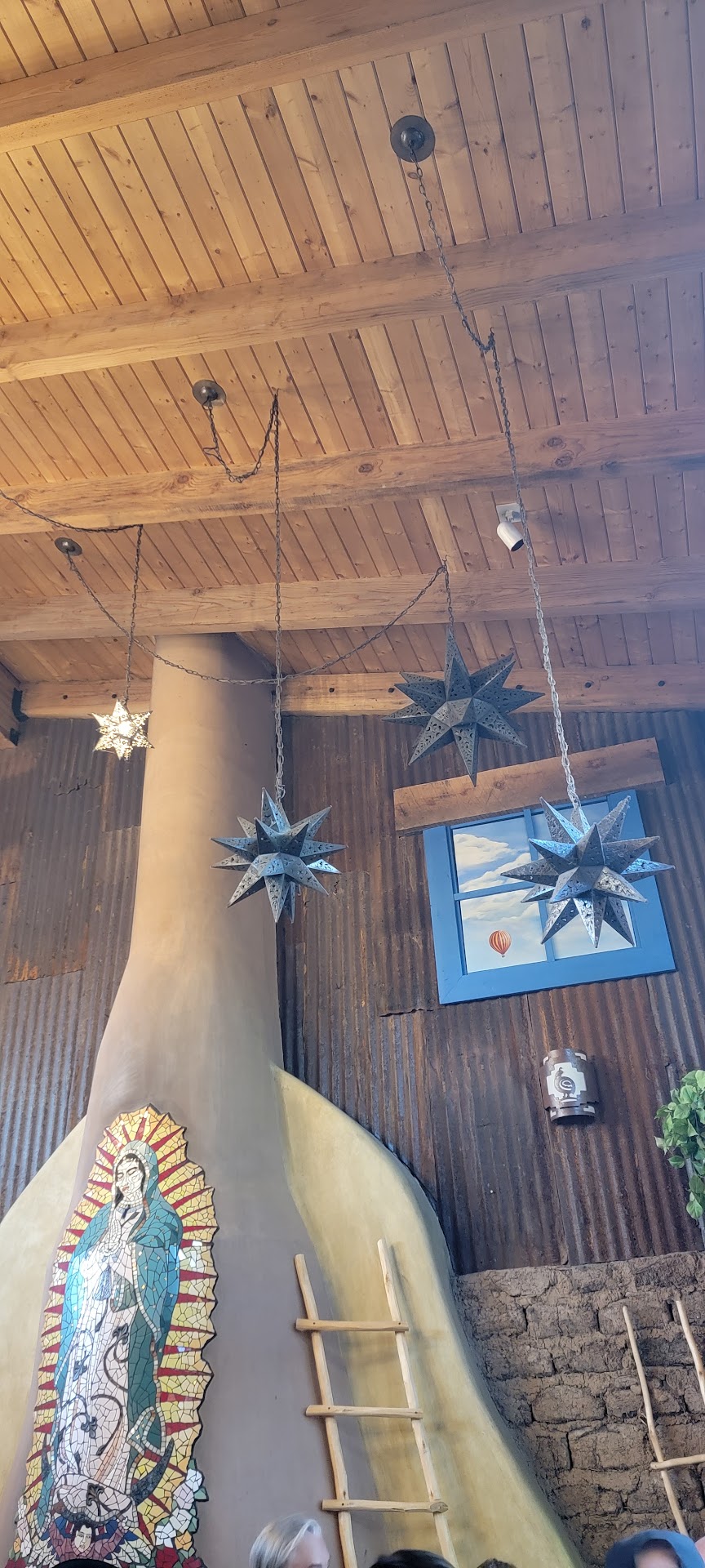 Read moreThis was my first visit. I swear on a stack of Mad magazines that I nearly always give 5 star reviews (easy to verify here in Google). The service was interesting. The waitress was excellent, extremely attentive. The hosts didn't notice me standing at the front of the line at the host station. When I was asked what I needed (not the number in my party), I said with a grin that I needed to be seated with my group. The host disappeared. The second time, different host, a group behind me were asked how many in their party. I was opaquely invisible and spoke up, "hello, dear". The host said there was no group there by that name and turned her attention to the group of young women behind me. No idea why that happened. Fortunately, the first host, who did know the group by name, reappeared and walked me to the table. I am a 63 year old woman with a fine sense of humor and I smile a lot. Is it that I am trying a new streaked gray and brunette hairdo? That I was wearing a red cotton blouse, super bright paper bag bermuda shorts in a jamaican-like red and orange flower print with basketball shoes and blood red laces. No, clearly not invisible, something else. No idea. I arrived on time and 15 minutes late at the table. My compañeras were super happy with their food choices. The atmosphere was excellent outside on the patio aside from something putrid decaying near the wall in the 90 degree weather. I'm sure it was just a super bad day for odors. Something died in the heat. I ordered Marie's vegetarian sandwich and it was sliced bread with sliced peppers and onions between them. This was a surprise snack, no protein, not lunch. I know I just happened to choose the only plate that they plan to take off the menú on the next version. Bad timing. I will go back, for sure, and try something on the new menu, preferably pure New Mexican food with a bottle of nice Rio Grande red wine, dry and muddy... And don something more contemporary, like a plain solid brown cotton dress with loafers. The company was outstanding. The experience was like an alternate telling of Alice...