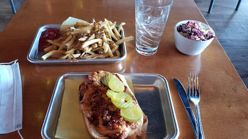 I dug in, starting with the fries, they were slightly over salted but the ground pepper added helped with balance (not perfect though, dial back the salt 20%). The ketchup served with the fries was nice. The fries had a ever so faint snap to them, that comes with freshly cut potatoes as advertised. They seemed soggy but were quite well cooked. Next I had to try that cole slaw (I used to hate that stuff when I was younger, now i really like it). I will say it didn't leave a good impression. It had a metallic taste to it, thinking about it there really wasn't any flavor either. My guess was the cabbage used was fresh but the sauce was not. Nor did the creamy sauce have any flavor. I was eventually able to send it back and the waitress took it off my tab.