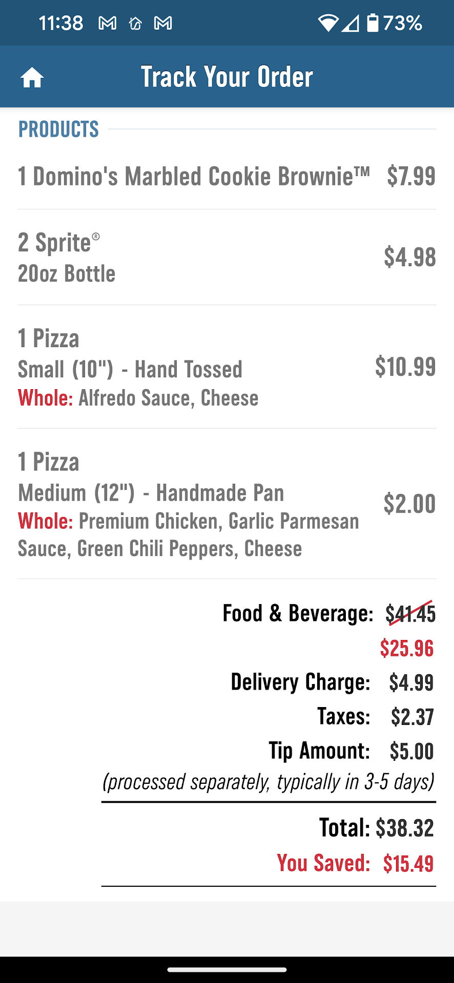 But I do have a big gripe about the cost. So a free pizza plus a another small plain pizza comes out to 26 dollars then you have a ridiculous 5 dollar fee, that really eats into the tip but I'm not going to deprive the driver of tips because of this ridiculous free. And that's part of why people do the pizza delivery jobs knowing the risk of driving a lot. I know from Reddit circles that the franchises only reimburse at most 55 cents a mile. My house is 2.4 miles from the location so a 5 mile round trip that is $2.75 and I know I'm not going to be the only person on the trip so the actual amount being charged per customer for a delivery fee isn't really going to be that full amount of $2.75 of the 5 dollar delivery fee. And certainly not for insurance which is pennies per trip. This feels like it's just another way to rip off customers when my $25 dollar order comes out to 39 dollars which is 50% cost ontop the actual meal value including a 5 dollar tip, taxes and delivery fee. These drivers aren't making 3 dollars an hour like servers are restaurants do either. From what I hear they are making at least minimum wage or up 12.50 an hour?? Stop price gouging customers or actually increase the prices of the food to stop misleading customers about the actual cost. Why are we still getting gouged for...