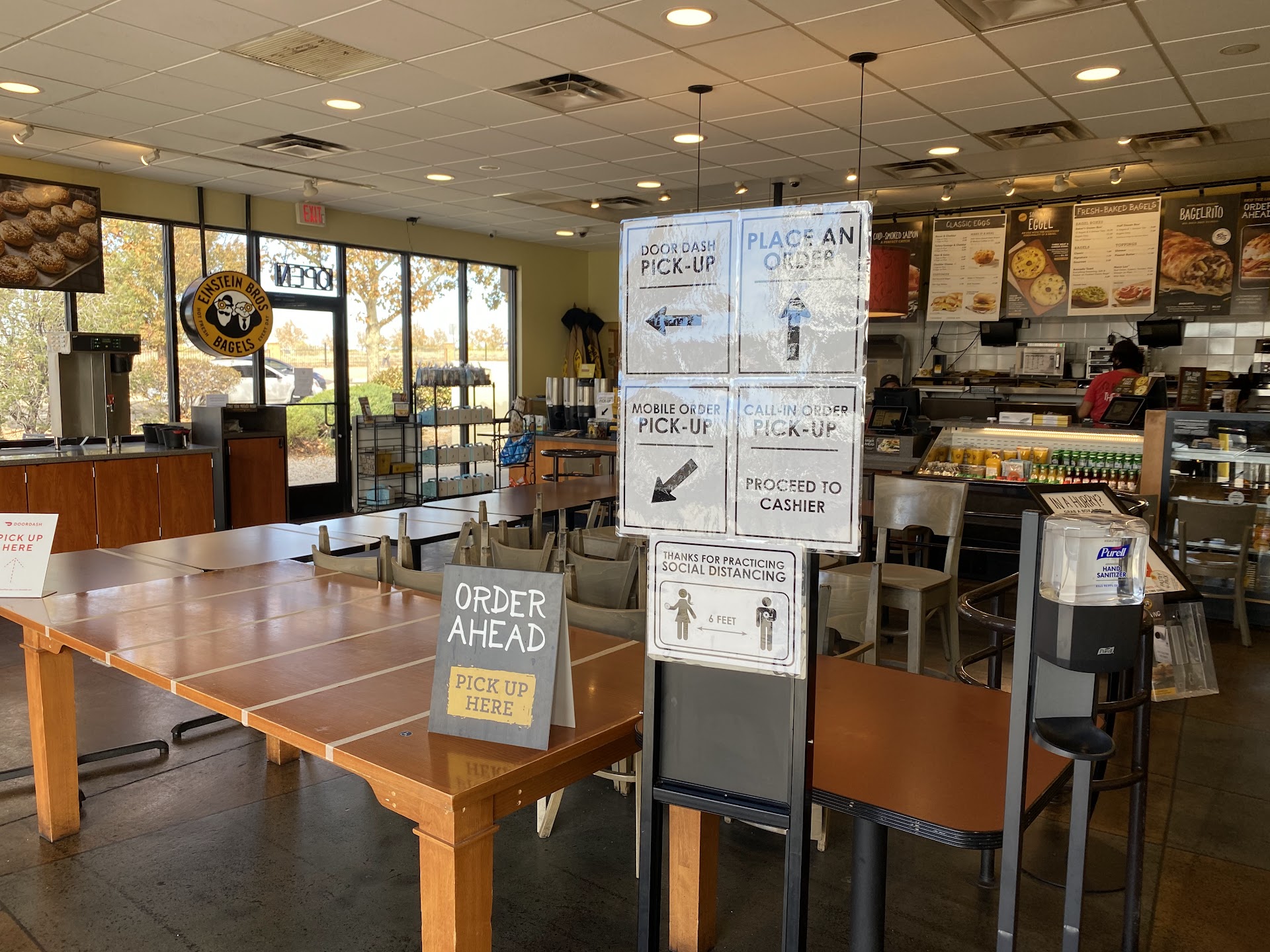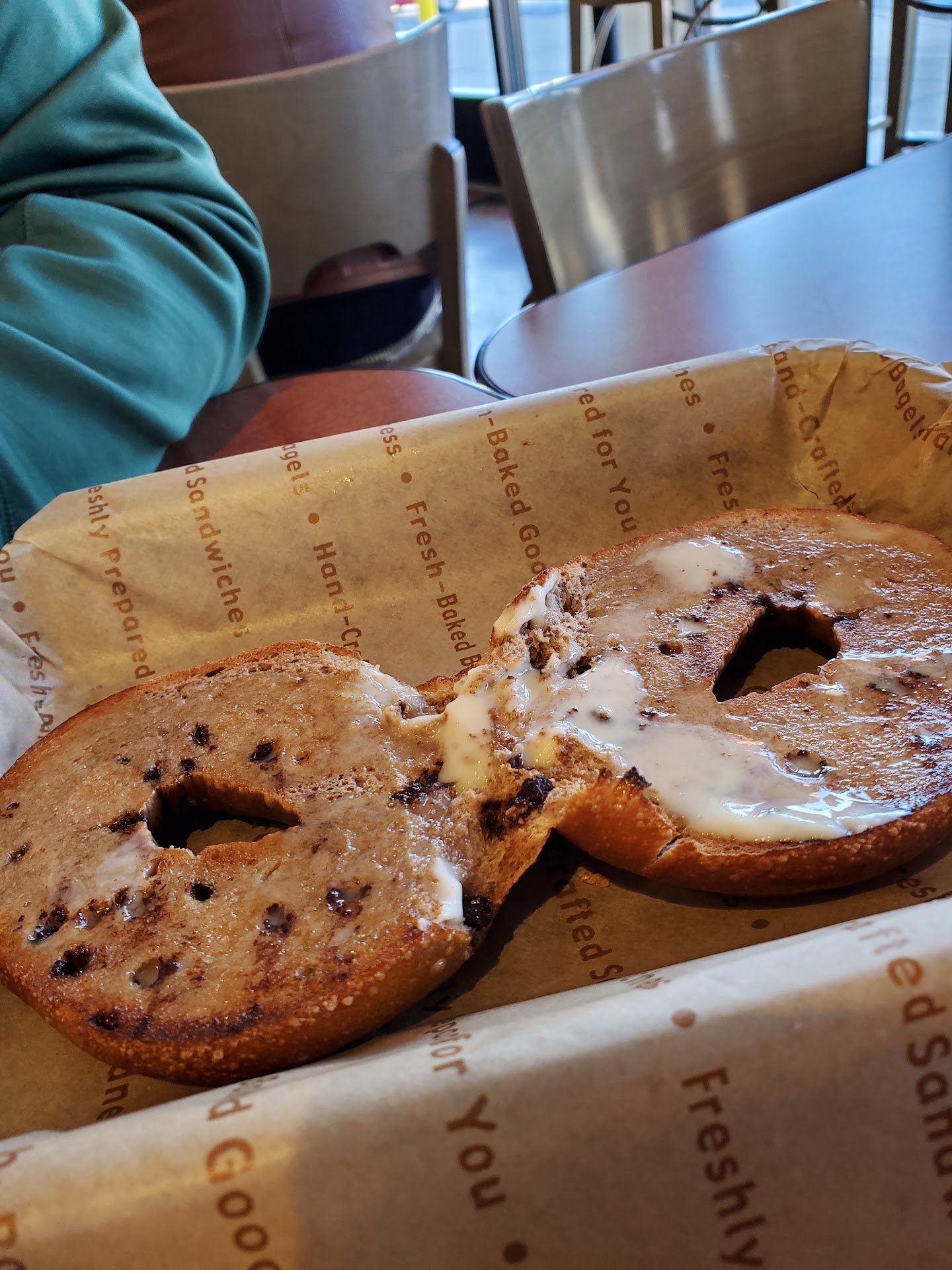 Read moreThis Einsteins had been very frustrating since about March. The food is still tasty, but the new staff they have either have no personality or no customer service experience. Starting back in March, there productivity has gone down and food on weekends takes way too long for it being a bagel joint. I've been trying to be patient, but I feel like every other time or more often I eat here (which is weekly) I have another issue with one thing or another. Today's example, I had a 3 free bagels for filling out a survey that stated gourmet bagels might have an additional charge (thank you Einsteins corporate!!!) I went in and showed them the coupon I had before ordering and then ordered my 3 bagels unsliced and untoasted for later in the week one being a gourmet bagel (because as a New Mexican, who doesn't love a green chile bagel) along with one bagel with peanut butter so I could enjoy breakfast for the day. I get to the register and the girl checking me out informs me I don't have enough correct bagels to use the coupon... she says the green chile bagel doesn't count because it's gourmet. When I pointed out the fact that the coupon said it would just be an additional charge, she said it didn't work that way on her side and they couldn't do it. I would have to select a different bagel. THEN I asked why I couldn't count the pretzel bagel I had ordered since it wasn't a gourmet bagel to which she responded its because I ordered PB with it... are you kidding me? First off, why wasn't any of this mentioned when I was ordering and had already shown the coupon explaining that's what it was being used for and then how in the world can you possibly be so unwilling to try and figure out how to "help" when the coupon CLEARLY states that gourmet bagels are an additional charge and I was willing to pay the additional charge???
