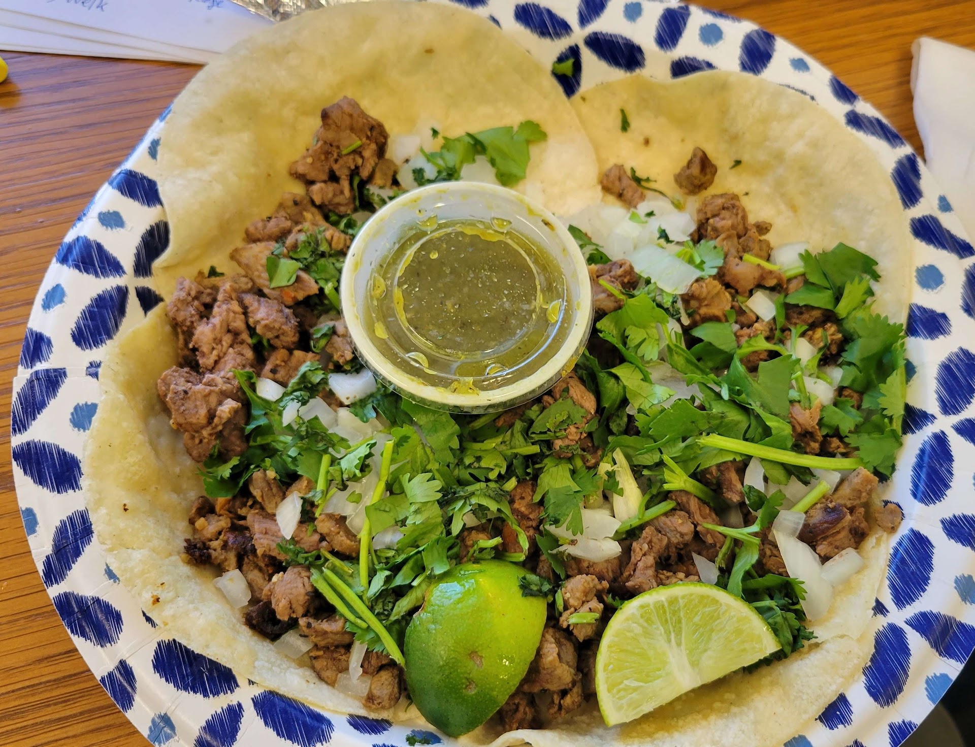 Read moreFirst time here and I got 4 tacos al pastor for 8 bucks. I thought they would be fairly small but to my surprise they were fairly big and filling! They were super delicious Mexican street tacos style with onion, cilantro, side of salsa and lime wedges. Another item I bought was a asada torta which I was also impressed how big it was and it came with fries! Pretty happy with this place and will...