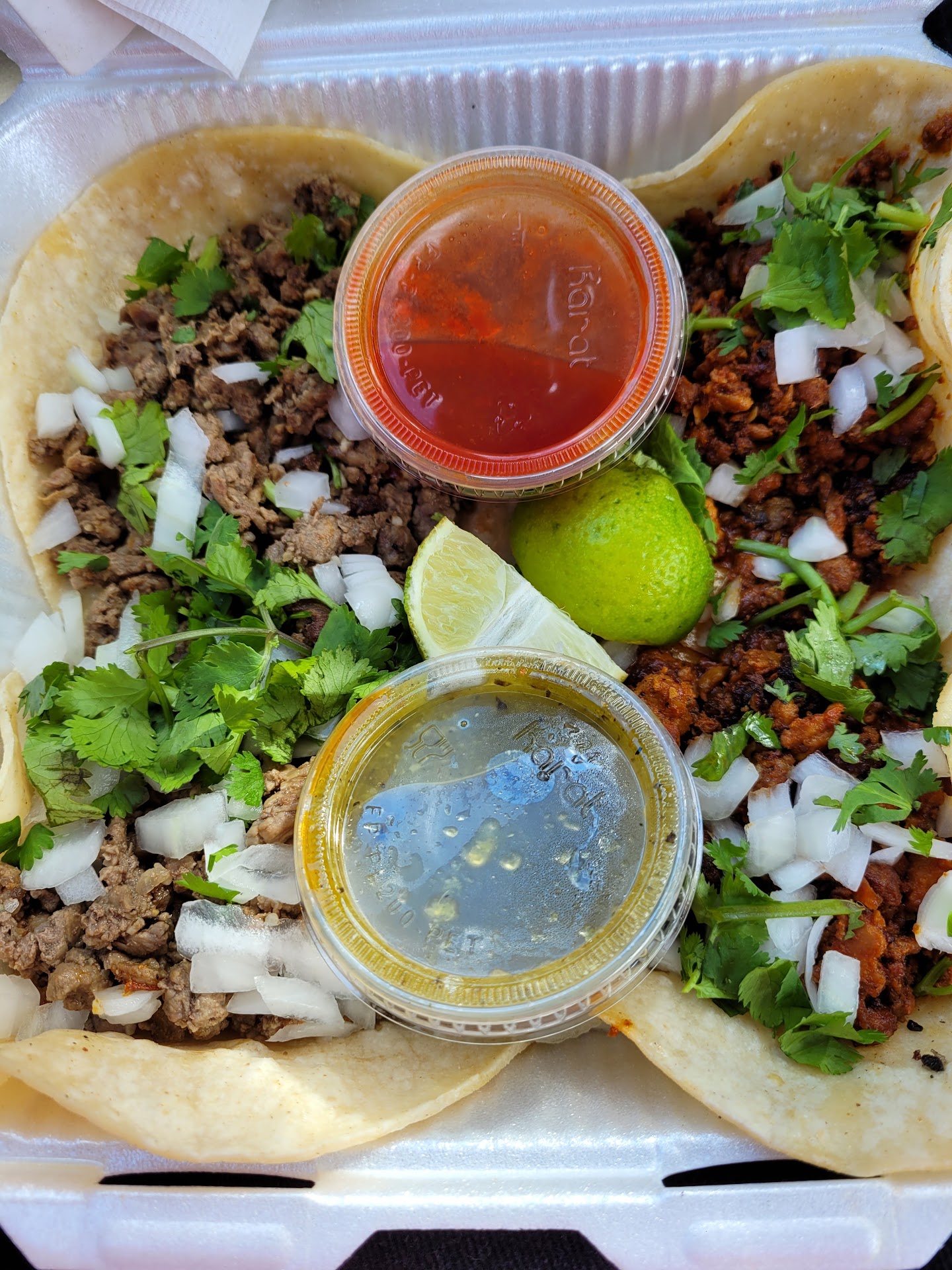 One of my favorite taco trucks in Albuquerque. I'm tempted every time I drive by and I stop and get four tacos when i can. Not only are they perfectly on point traditional street tacos with the delicious meats, onions, cilantro, and lime, but both their red and green salsas that come with it are delicious. I also enjoy the deep fried jalapeno he often provides with them.