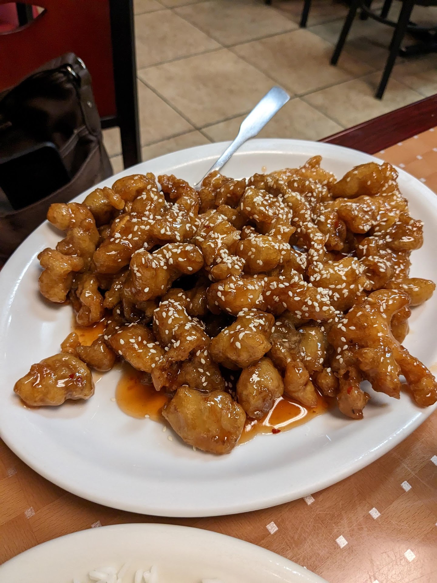 Read moreSmall restaurant with a number of tables. Plenty of carry out orders served. We waited for a few minutes to be sat. When we did sit down the table was very dirty but the server/cashier was kind enough to clean it. Walls and other tables looked a bit dirty (maybe we just missed the rush). Still, unpleasant to sit at a dirty table. We ordered sesame chicken which was not bad but not definitely not good. It tasted a bit over cooked and chewy. Egg rolls were very oily and sauce was nothing special. We also ordered Broccoli beef and it was better (in comparison to the sesame chicken). Rice was brought on a plate? Every Chinese restaurant I've gone to will normally serve the rice in a covered bowl so that it keeps hot. A little disappointing but it was cooked well. We ordered hot jasmine tea and ice water. The container for the tea was very dirty... I felt that 2 - 2.5 stars for the food is accurate. It was not reflective of other 4 star reviews...