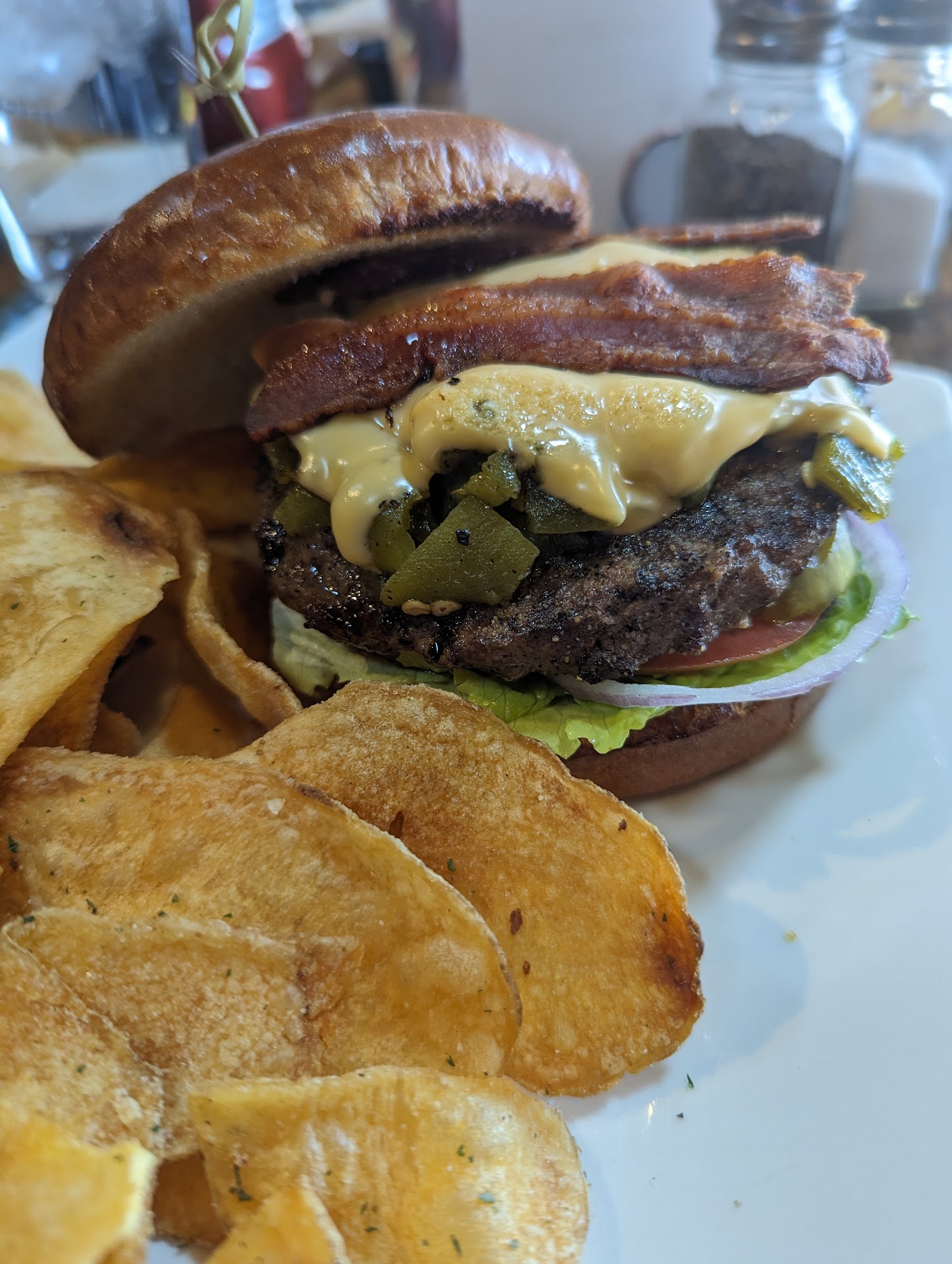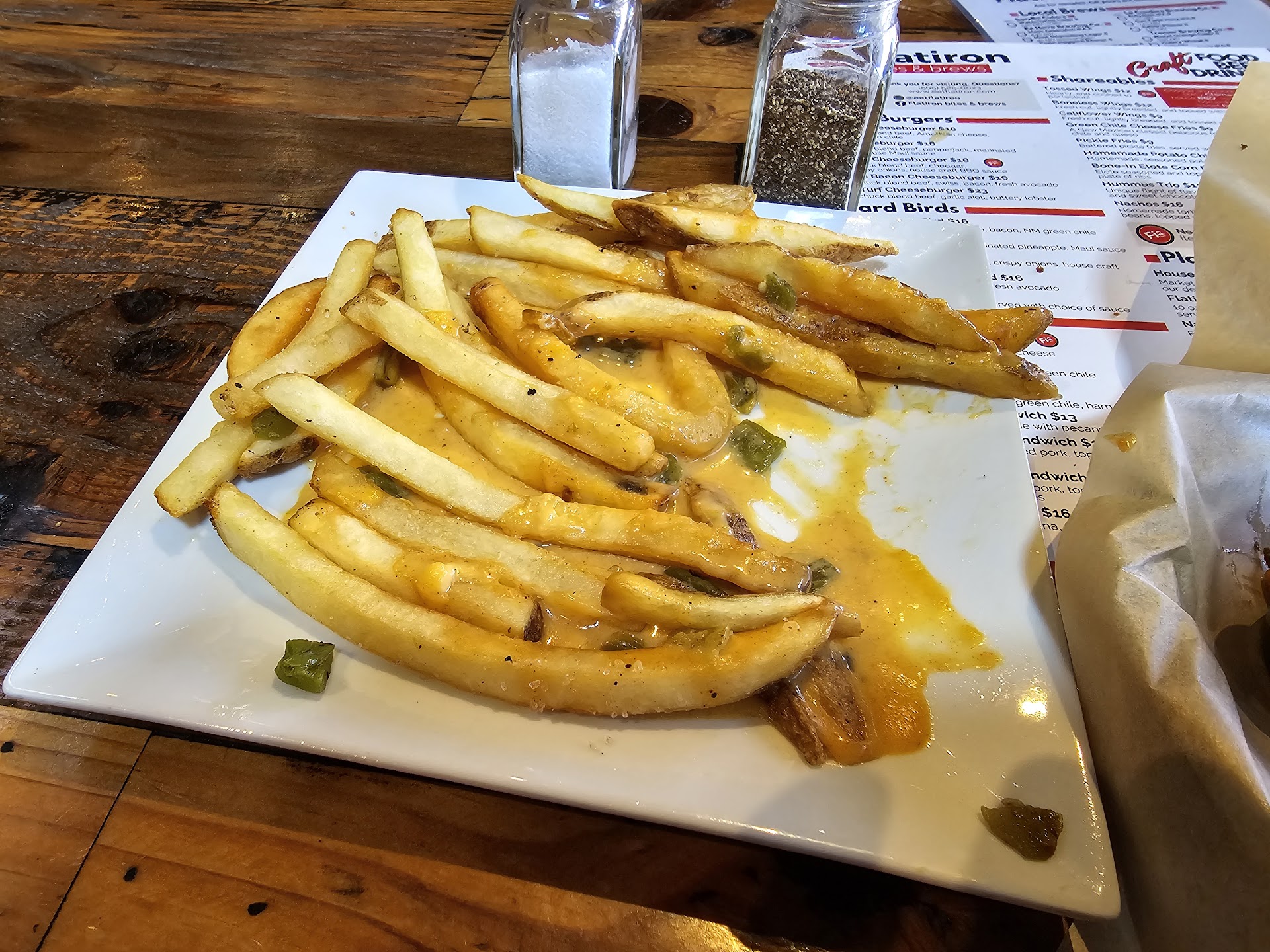 Read moreAlmost wished I had chosen a burger on this visit. I love fried pickles. It appears that cooked the pickle out of them, super salty and greasy, couldn't find the. The green chile chese fries, for the price I expected a bit more chile and a crispy fry. I did pick through and get as much chile as was easily available but it wasn't much with the soggy fries. The cheese sauce, we'll let's just say it was kind of cheesyish sort of. I made a comment about the pickles being kind of greasy, she said well, 'they were fried'. WTH? As you can see there is a pool of frier grease on the bottom of the paper, yup, really greasy. May not be giving them a fair chance with only 2 appetizers, but, they set the standard in my opinion.