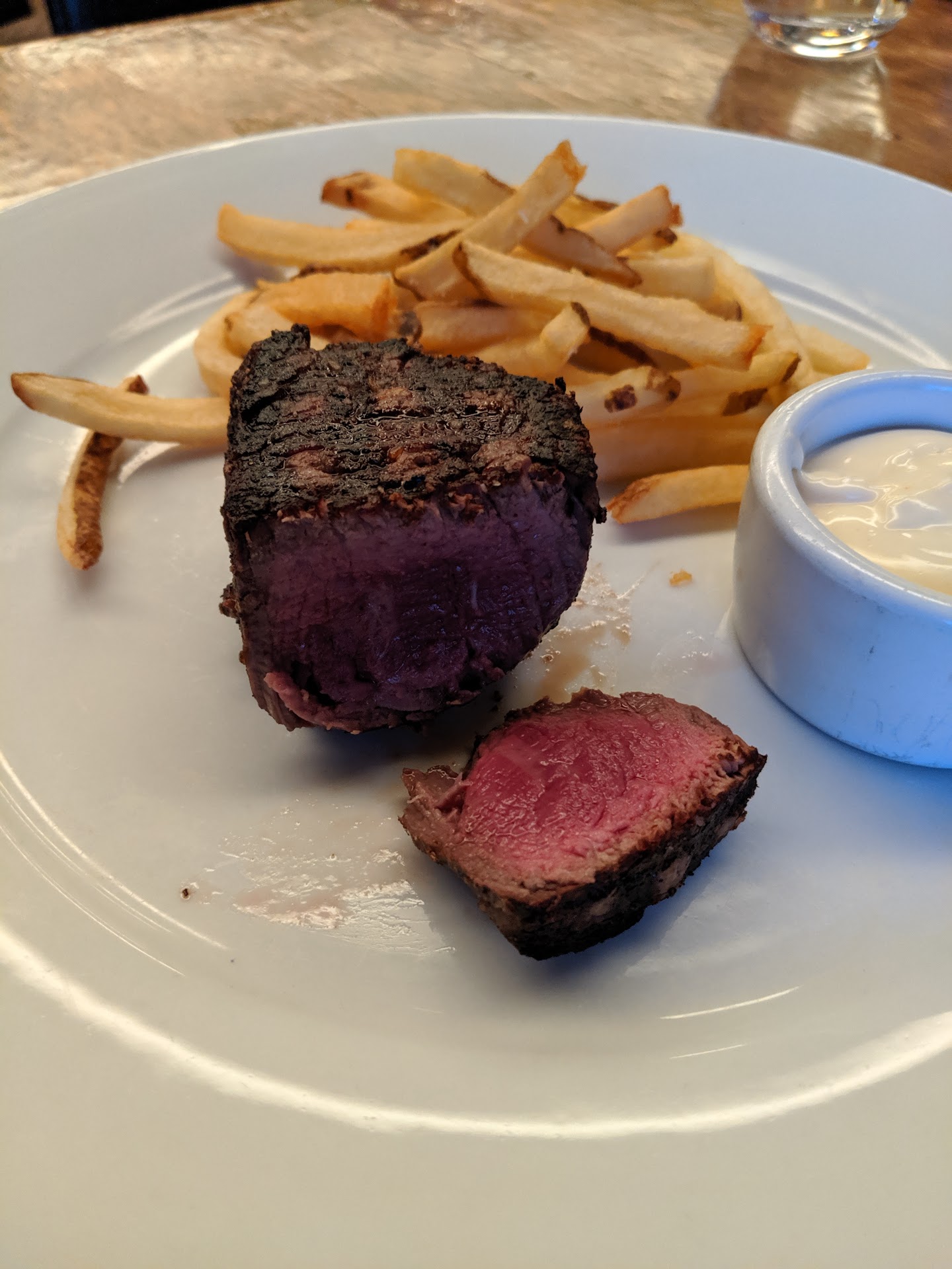 Read moreOne of the best burgers I've ever had in my life. Incredibly rich and flavorful but not so heavy that you leave feeling overly full. And the fries are maybe even better than the burger - perfectly salty and almost impossibly crispy, with delicious frite sauce being the cherry on top. They're so well-fried that they actually keep overnight, suggesting that they employ some form of magic in making them, as most other fries turn to soggy garbage after a nap in the fridge. The carrot dog is also very good, as is the mac and cheese. The menu seems to rotate somewhat frequently, although some staples remain in every iteration. Some of the items can be quite expensive (especially by Albuquerque standards) but I've yet to have anything that I felt wasn't worth the price. The burger is a great deal comparatively at $14, but you really can't go wrong. But maybe just...
