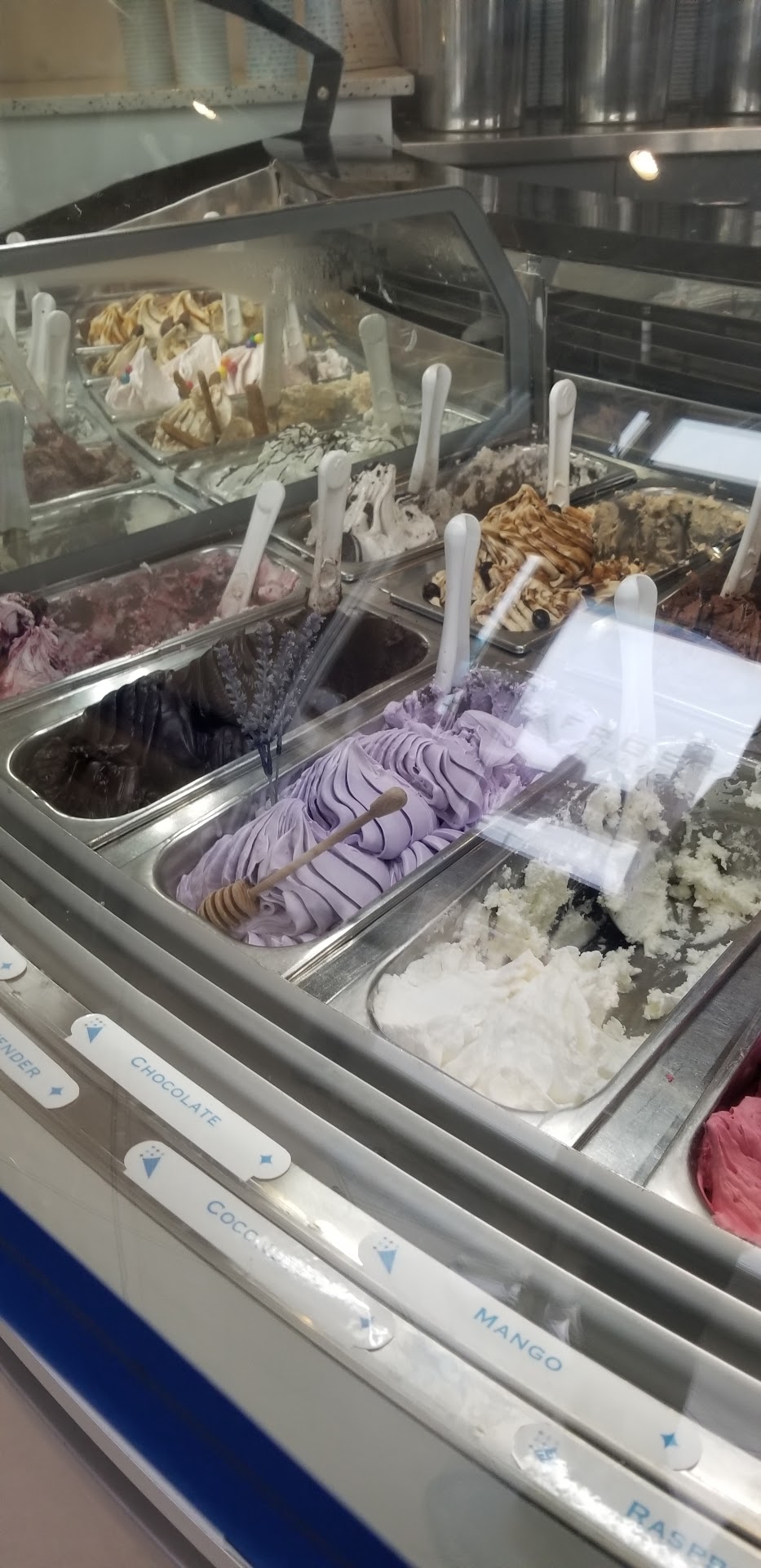 Read moreWe have been here twice so far in the past month!! The sorbet is so creamy, rich, and flavorful that I couldn't believe I was eating the sorbet instead of the gelato. My husband has tasted the gelato, and can confirm that it is equally as delicious! The staff is super polite and very helpful - and when I couldn't decide what I wanted the first time, the recommendation was perfect. I've gotten mango, strawberry, blackberry and raspberry so far and I just keep wanting more... and they've been great about making sure that the pint or quart we've brought home with us is packed tightly and so full that there isn't room for even a sprinkle to fit! XD which I'm very grateful for. The displays are absolutely gorgeous, they look unreal! The decorations only serve to make me want to taste everything, it's all just so appealing. This last time we went, there was a lavender gelato that I wanted to taste SO badly as soon as I saw it.
