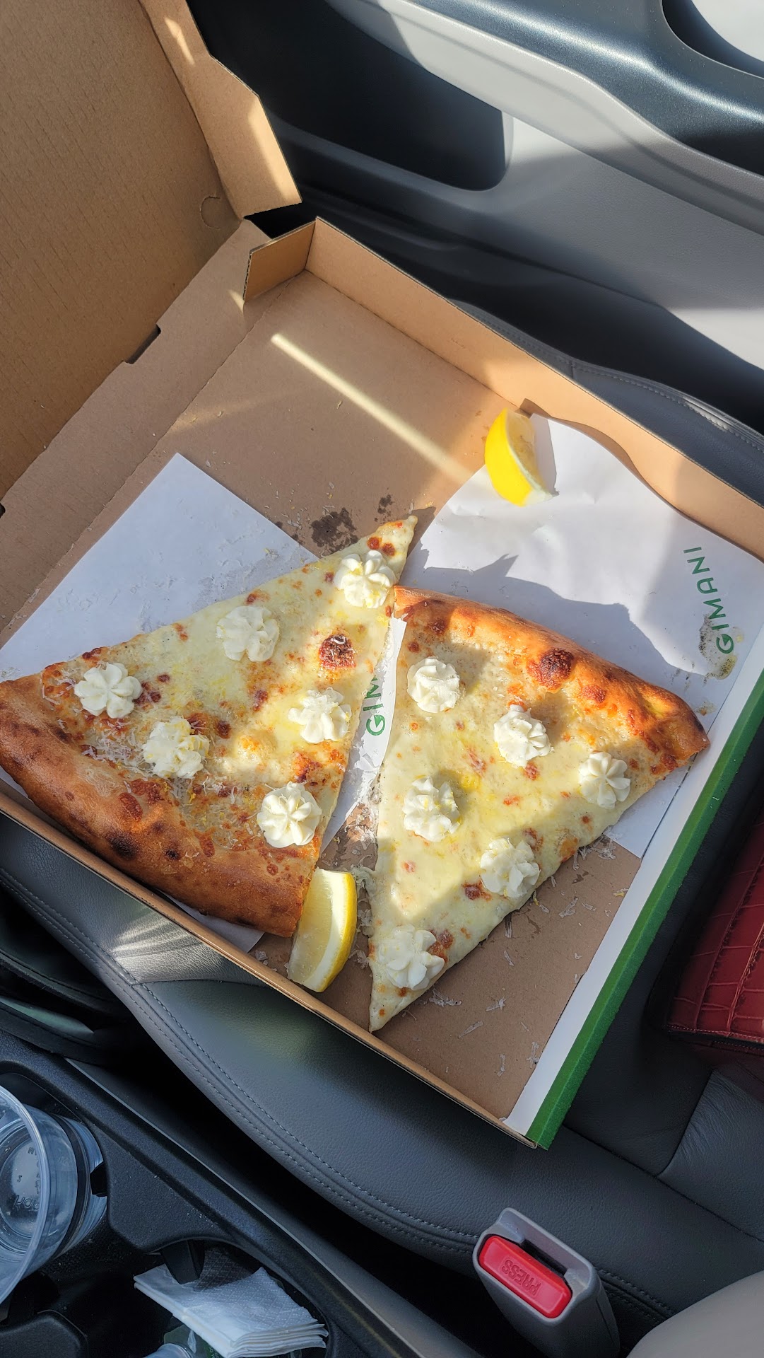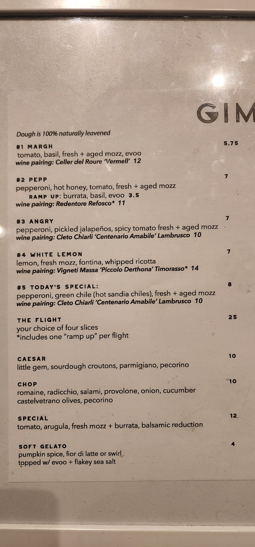 They have 4 different slices of pizzas plus their special. We got the flight which included their main pizzas. The pizza slices are really big. I think the perfect portion would be two people sharing a salad and each eating a piece, but I am big on portion sizes and hate getting full. The lemon pizza was the best white sauce pizza I've probably ever had. I don't normally gravitate towards white sauce. I'm not sure what the exact difference was but the crust on this one was extremely airey and sooo fresh and delicious. I absolutely loved the flavor too. My friend who likes white sauce more than I do wanted to see other options for toppings like possibly shrimp. Pepperoni with the ramp up was absolutely incredible. I'm a sucker for hot honey on pepperoni pizza. I collect different hot sauces and hot honeys and asked if they sold their "house hot honey," to which they replied that they used Mike's hot honey. Why is it called house hot honey if they don't make it in house? That should be changed on the menu and was one of my few gripes. Their Angry and Margarita were really good but the other two were much better. Our only other real criticism was that they should cut the basil up and spread it better around their pizza or just fry their basil so it wasn't as intense of a flavor but maybe that's Personal preference. We've also had better red sauce but I know it's not an issue with ingredient authenticity. I think more garlic and fresh herbs would seal the deal but it's hard without breaking the ingredients down. Btw, we also had wine which was delicious but I like most wine so I don't speak on that.
