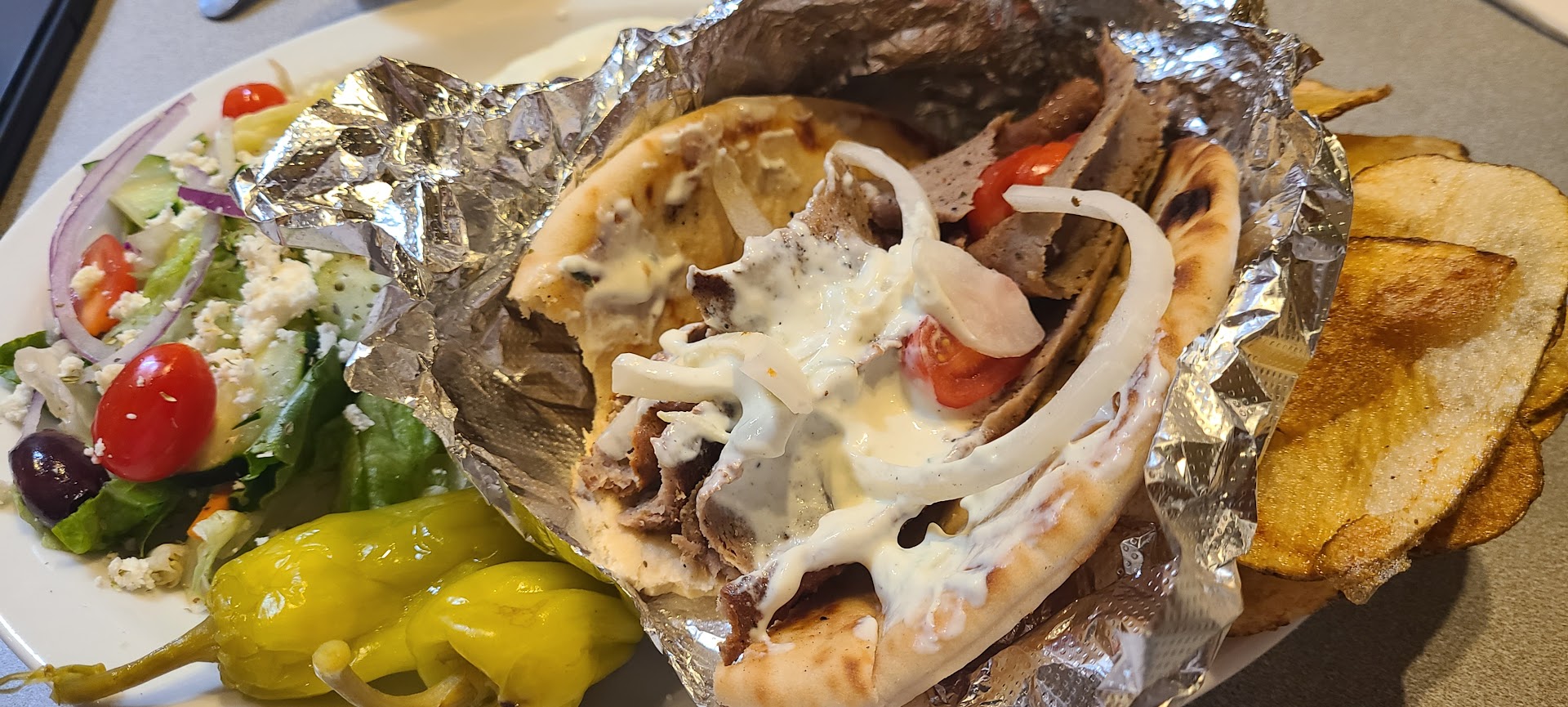 Read moreThis review has been a long time coming. I love Gyros and try to eat them when I can, and this place is one of my favorites for them. They are always consistent and never vary on flavor or quality! I have always ordered the same thing every time and forget the menu has other items LOL. The gyro combo which comes with a gyro, greek salad and patates (fried potato chips). The salad dressing is amazing on the salad and even though they always put a couple of olives I push them aside and devour my salad first! The dressing is just soo good. The gyro meat is always tender, super flavorful, always warm and never hard or cold. The pita bread that it is in is always great and again never hard, or have hard spots like it was left out all night in a unsealed package. The tzatziki sauce is perfect, and they add small sliced tomatoes and onion. Just perfect. Just perfect. We travel to this place about once a month to get our gyro fix taken care. I literally don't eat them anywhere else in the city, no need, "when it aint broke, dont...