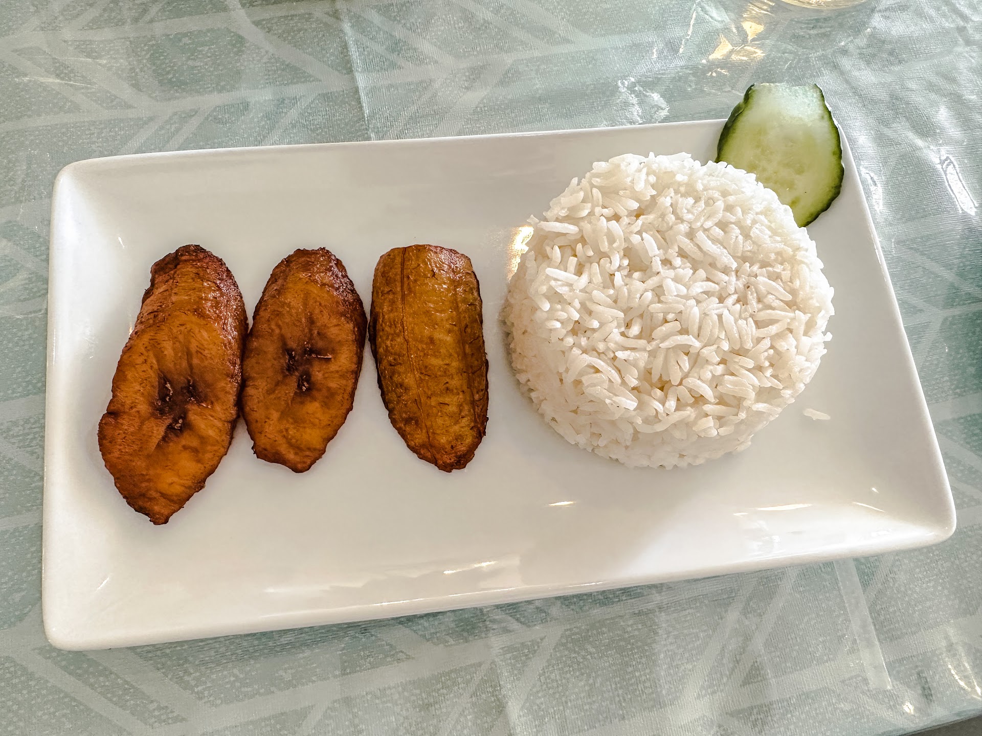 My friend really enjoyed the pork bowl he had, which came with a rice-and-bean combo and fried plantains.