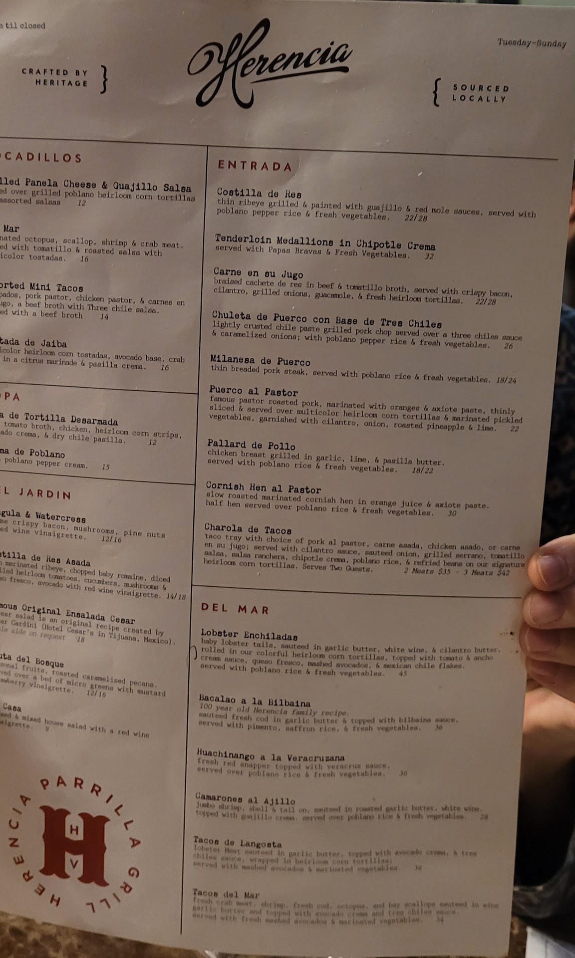 We were looking forward to the two lobster entrees, enchiladas and tacos, and much to our disappointment, these ARE NOT LOBSTER. We addressed the staff that we thought there’d been an error and were profusely assured that the content was lobster. However, their entrees are clearly made from langostino, which is a crustacean similar to a hermit crab that is not a true lobster and tastes / feels nothing like a lobster. Herencia should take note that Red Lobster was sued and settled, for falsely claiming they were using lobster when they were using langostino. Herencia’s menu clearly states LOBSTER. This is false advertising. Langostino is regulated by the FDA and must be specifically labeled on the menu as such - Herencia is in violation of this requirement. Additionally, they charge a real lobster price - appalling.