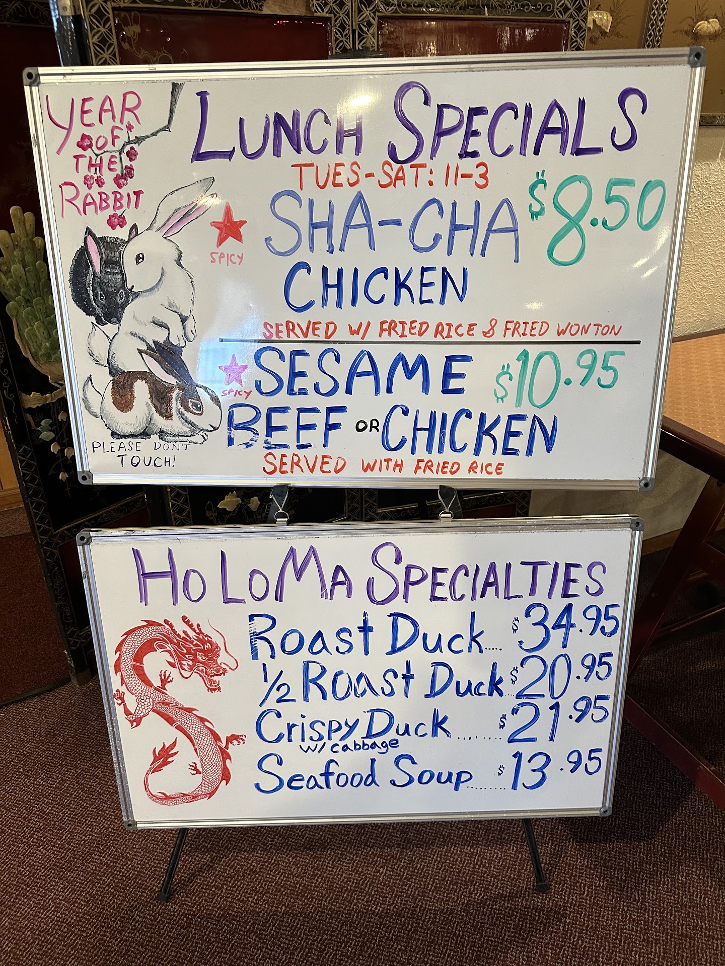 Read moreWe had the Ho Lo Ma dinner for 4. The dinner is 16.95 per person we paid for 4 diners but we only got 3 servings of certain appetizers.The fried appetizers were fried to death. The chicken in foil and chicken wings were rubbery in spots and rock hard in others. The entrees were presented as described, however they smelled "off". The meat in the Mongolian beef had a sour, spoiled taste to it that I was able to notice right away. My husband though, is suffering from allergies and couldn't taste anything but after seeing 3 of us refuse to eat anything he became concerned as well. The chicken in 2 other dishes was rubbery, and the chicken in the General Tsao was practically cremated. My kids and I couldn't eat. We paid the $84 and left feeling queasy. On a side note there was also audible yelling and family conflict with the mother/daughter working and that left the daughter in tears and unable to be an attentive server. I felt bad for her which is partially why we didn't mention the funeral we had at the table and just chose to pay and leave it all behind.