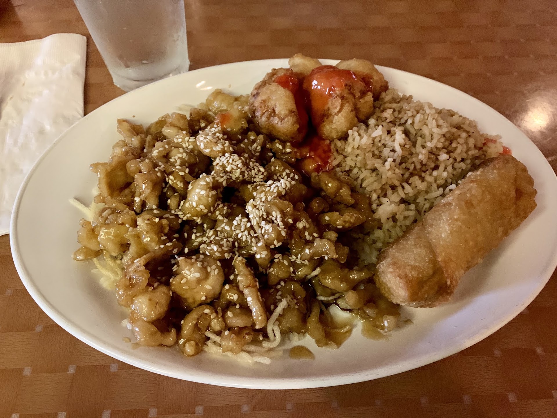 Cashew Chicken was almost entirely eggplant, some chicken, with a some amount of cashews. Eggplant was hardly cooked on top of it all.