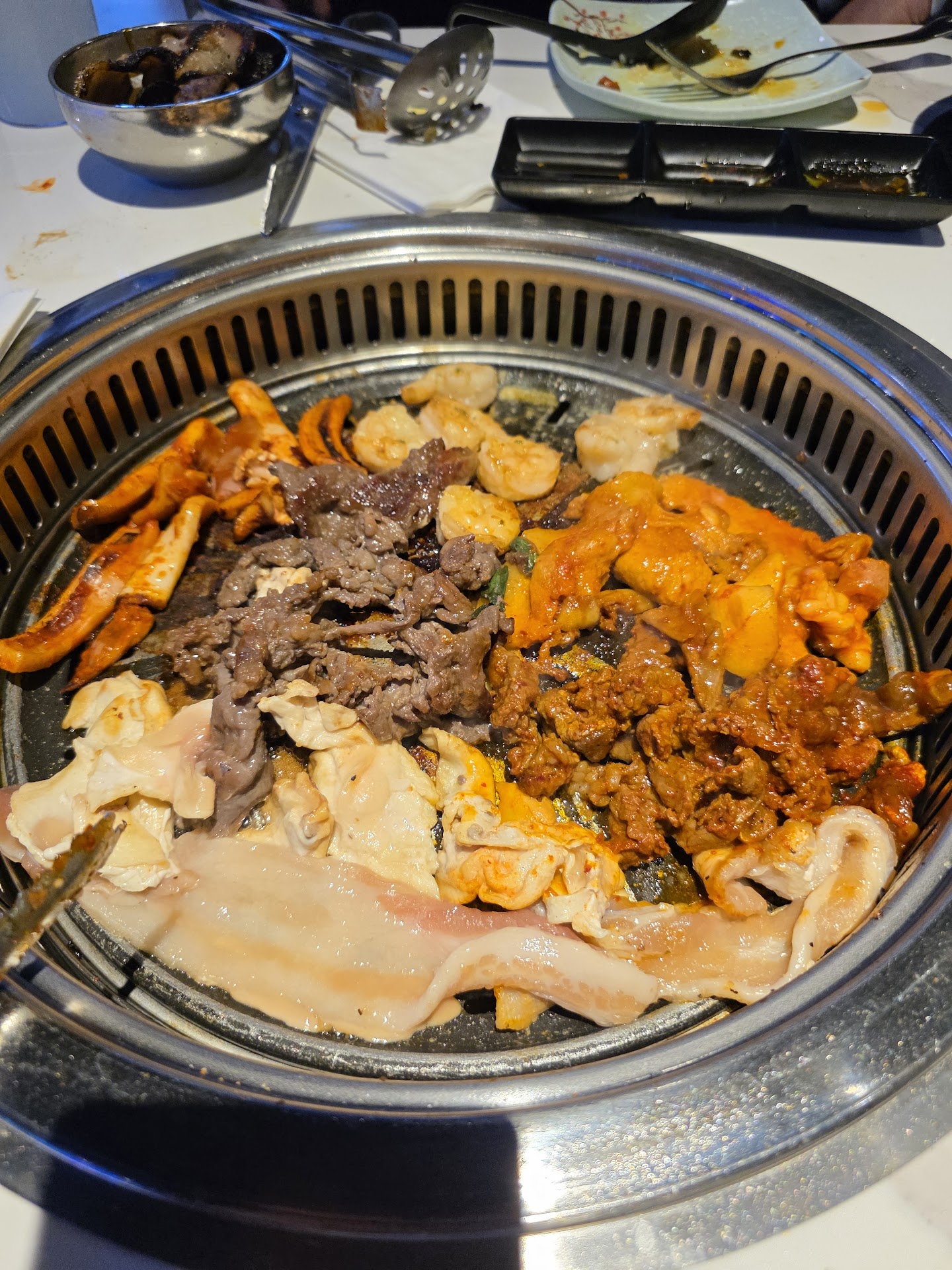 While we enjoyed the hotpot portion—it actually worked well with induction—the Korean BBQ setup just didn’t work. In our opinion, switching to gas grills would significantly improve the experience. Watching food burn in one spot and sit raw in another really ruined the meal.