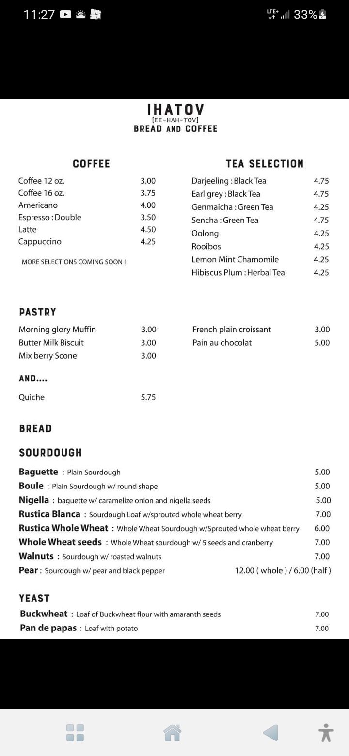 Ihatov did not disappoint. In my one and only visit so far (I'll definitely be back) I ordered a latte and a sourdough baguette to take home. The latte was literally perfect. Just absolutely perfect. I'm actually curious as to what machine they use because their espresso based drinks are spot on.