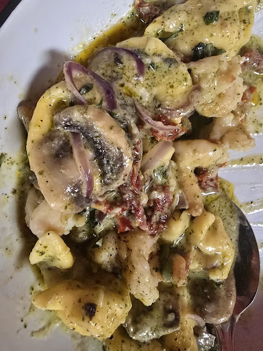 Read moreI ate one of my favorite dishes EVER at this small, local restaurant. I had become bored with food, restaurants and simply eating out. A 4.7 star rating caught my eye along with a dish Pesto Tortellini with mushrooms, red onion, blue cheese, sun-dried tomatoes and basil. ( I added sautéed shrimp to mine, a "must" if you like shrimp) It was off the charts delicious! It rivaled Italian restaurants all over this world. I kid you not! The shrimp were cooked to perfection and the flavors all melded into a sauce with a hint of blue cheese. I even added some of the Calabrian chili pepper oil on top, simply divine! The food came out QUICKLY, it was hot and appealing at first glance. I never expected the "taste explosion" after the first bite, and it just kept coming bite after bite. Rebecca was our waitress, a very personable, attentive , hard-working young lady. We never had to ask for a thing! She was familiar with the customers, menu and never made us feel rushed. The Local atmosphere, service and simplicity of the restaurant along with the dishes served made for a "10" on a scale from 1-5. If you want Italian, this is the place! One last comment, if nothing mentioned above has drawn you to this place, the price will! The cost of our dinner was outrageously inexpensive. Our bill for two with 2 entrees ( Lasagna and Tortellini with shrimp and a bread basket) totalled 46 dollars with tax. ARE YOU KIDDING ME? Simply said, don't pass this restaurant up. It is not fancy, but so comfortable and a real "gem"! Sorry, I have only 1 photo...food was almost already eaten before...