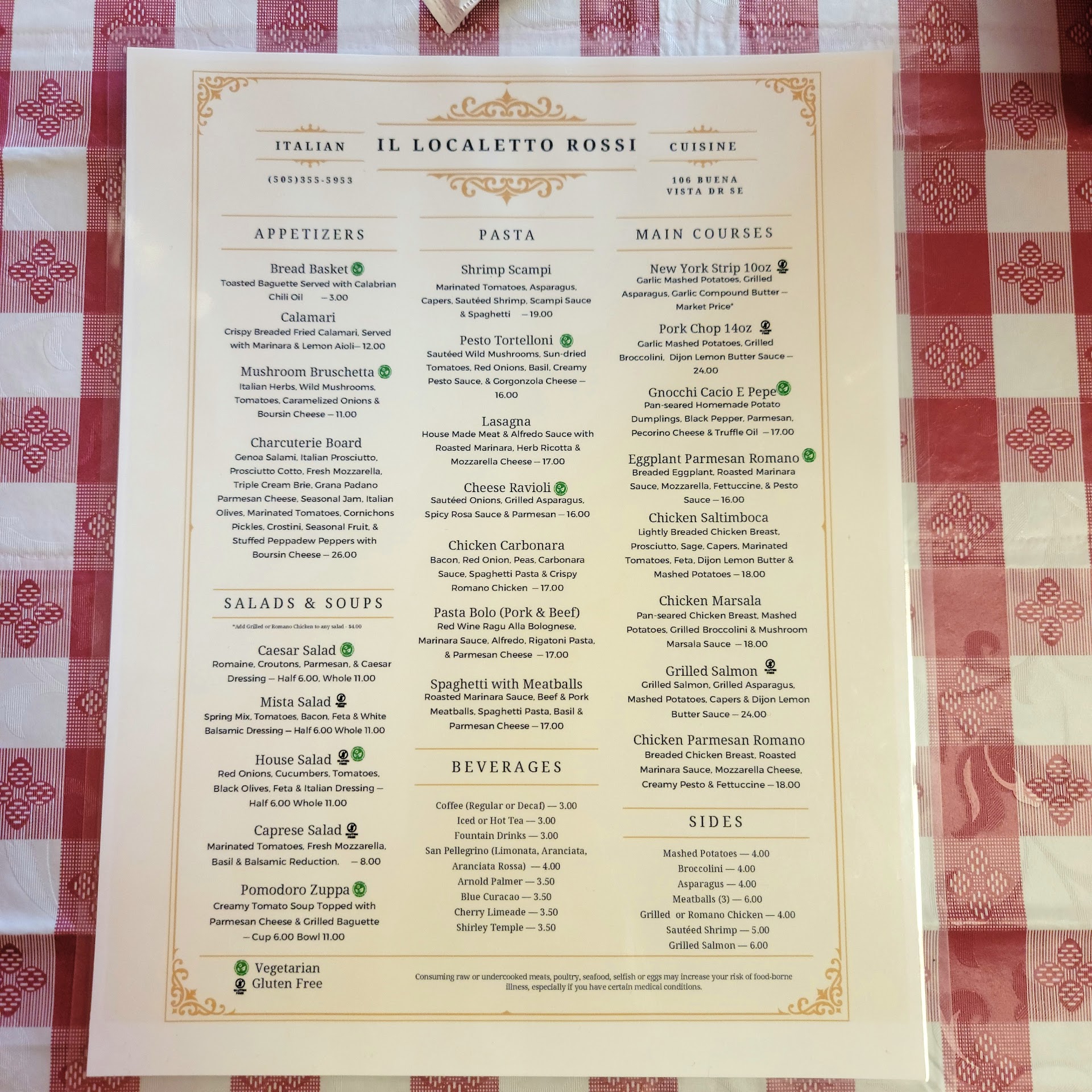 Read moreI was complaining about there not being any good Italian restaurants in Albuquerque. A friend recommended I'll Localetto Rossi. And I'll spend forever thanking him. First off, the place is small, intimate, and cute. It's just off Central on Buena Vista. You would never really notice it except for the sign. Walking in, (watch your step), you'll notice the decor. It's a clean, simple café vibe. Not too big. We were greeted by Skyy. She was super friendly and upbeat. Her attention to every detail of customer service was phenomenal. We tried the Lobster Ravioli, the Lasagna, and the house salad. We also ordered the bread basket for our app. The chile oil for dipping the bread was out of this world. The Lobster Ravioli was amazing. Fully stuffed ravioli, topped with roasted grape tomatoes, capers, peppers and shrimp, in a sauce that was beyond great. It was so good, I think they need to bottle it. And don't get us started on the Lasagna. It was insane!!. And a huge shout out to Skyy, and the chef. We came during lunch, and it was just the two of them. But, the service was never lacking. And the food was top notch! Skyy was definitely the reason for the vibe. She had the most infectious personality. She was engaging from start to finish. She anticipated our every need before we did. Seriously, you need to try this little gem. I know we'll be...