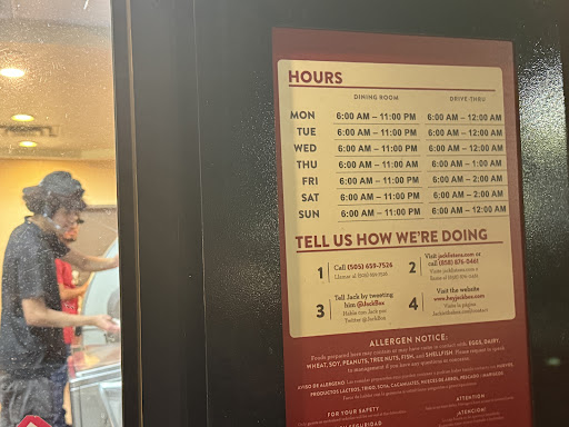 Read moreI found my place for upscale fast food with an amazingly over abundant menu spanning from, yes the famous jack in the box burgers we all know, with new late night(I think) bizarre additions that are mouth watering. Ha. The hangover burger with a fried egg. ( feels like home back in Hawaii) Anyways did you know they have Mexican (well TACOS) and Chinese food as well. AND THEYRE GOOD !!!. Not to mention their shakes blow out any competition their so thick and smooth. The lobby is ultra clean and nicely decided as well as furnished with the condiments and sauces on pump !!! that we all love to indulge on and get charged extra ANYWHERE BUT HERE. Its free. Gotta love it. BBQ sauce...Ranch Dressing... In addition to the basics. Great job. $5.00 meal coupons got me through the door but the food was picture perfect quality. Hot. Made fresh and WOW FAST too. That's a first. Now add 10+ friendly efficient service at ordering and you've got me writing this review. Jack in the Box on Carlisle by Wal-Mart. Open 24 hrs and will offer you everything you want when thinking Where should we go to eat. Top...