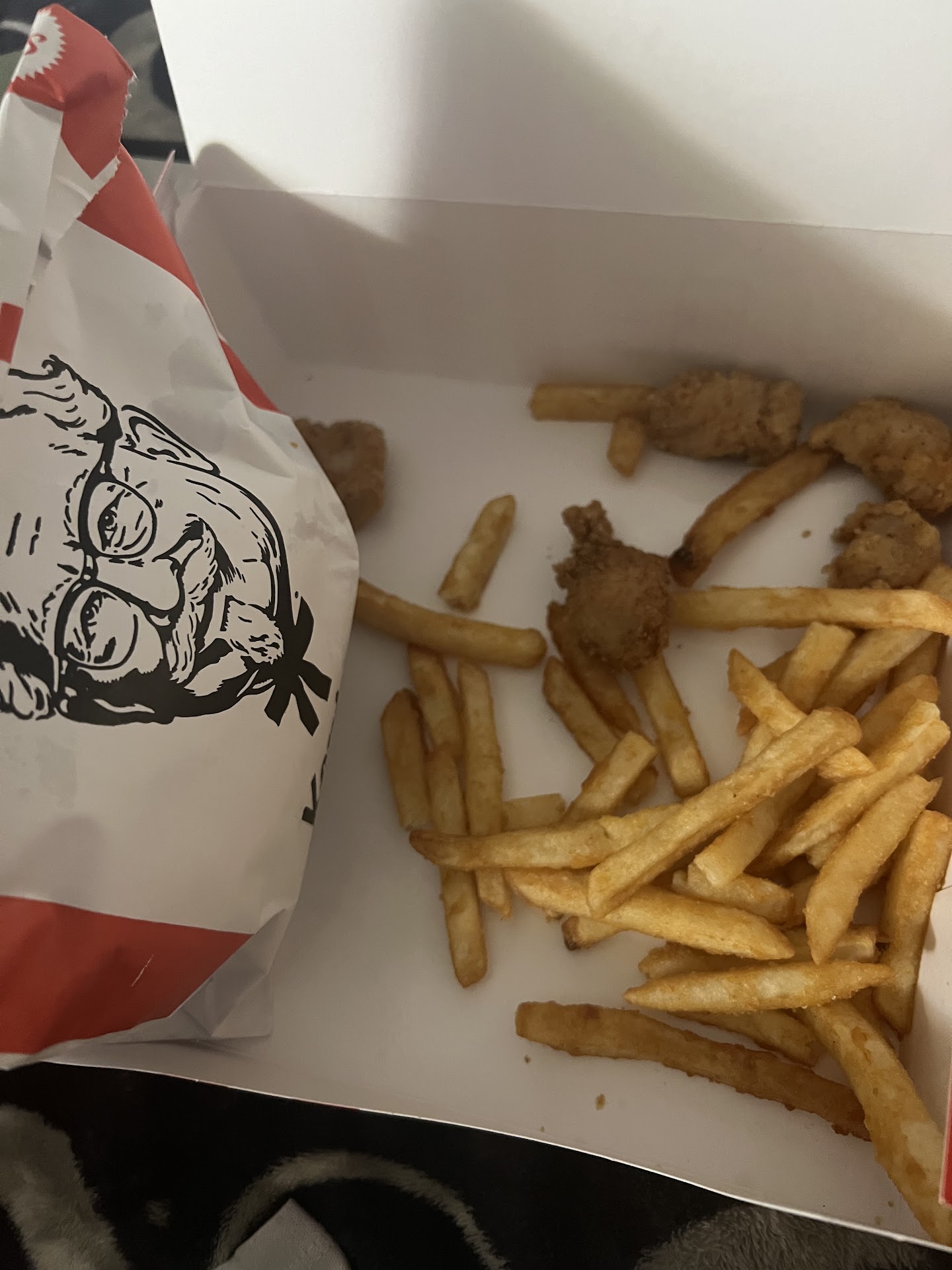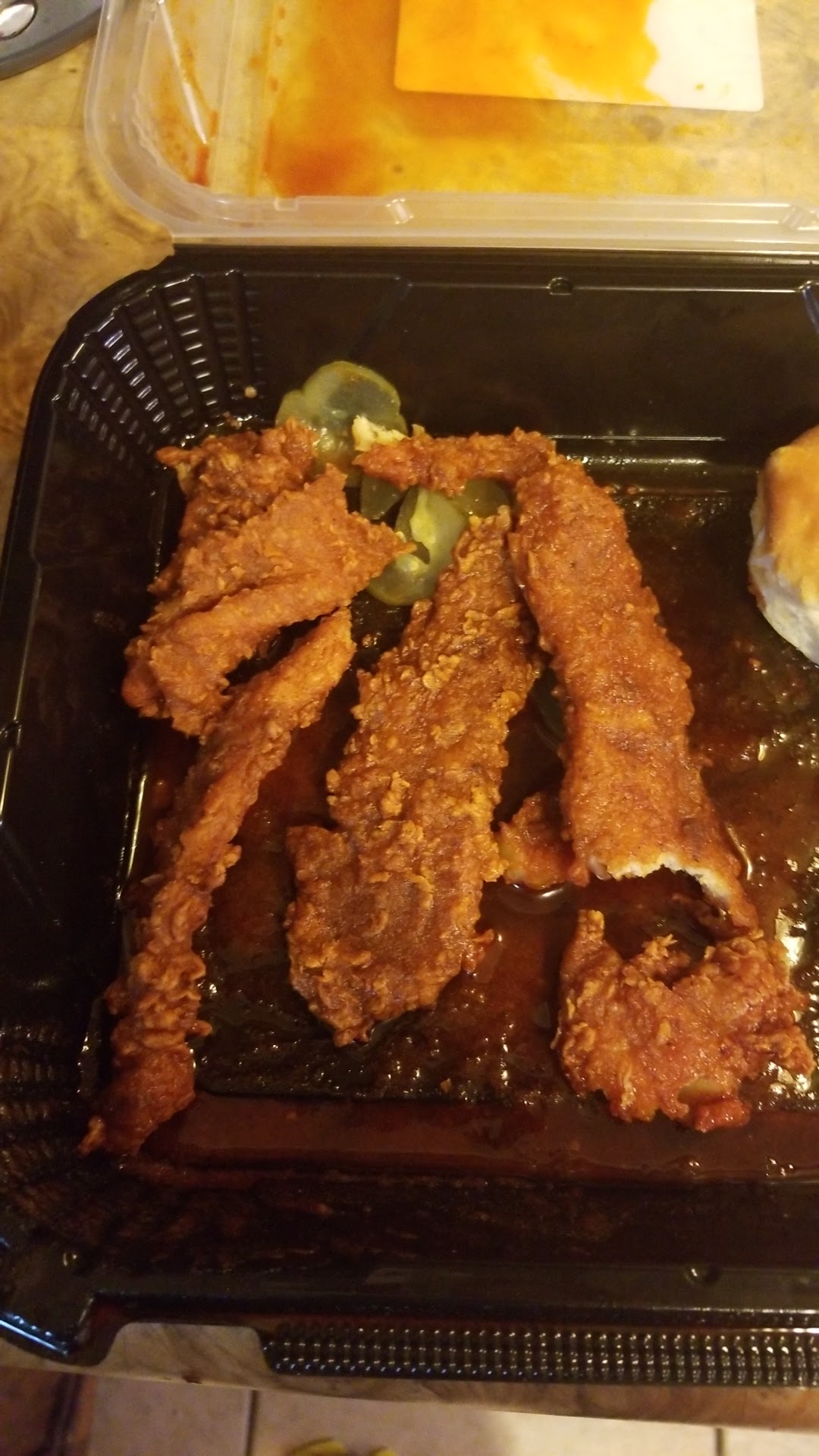 Read moreWe went there to grab dinner. When we were ordering the guy told us to please order original only. Not sure why, but it was fine. We ordered the $5 fill up boxes: one with 2 drums and a thigh, one breast meal and the famous bowl meal. When we got home, we opened the boxes and in the first one, there was only 1 drum and one thigh, both of which were super small and shriveled up like they had been under the lights for hours. There was no cookie and the biscuit was hard as a rock. Both sides--mashed potates--were cold. The breast meal was the same as the other--hard, shriveled and super small. The biscuit in this one was only half there--the bottom half and it was hard as well. No cookie either. In the famous bowl one, there was only the bowl, nothing else. The only thing that worked out were the drinks. We ended up just tossing it and making something at home since the chicken wasn't even edible and what one bite my kids did eat was super dry. The service was horrible.