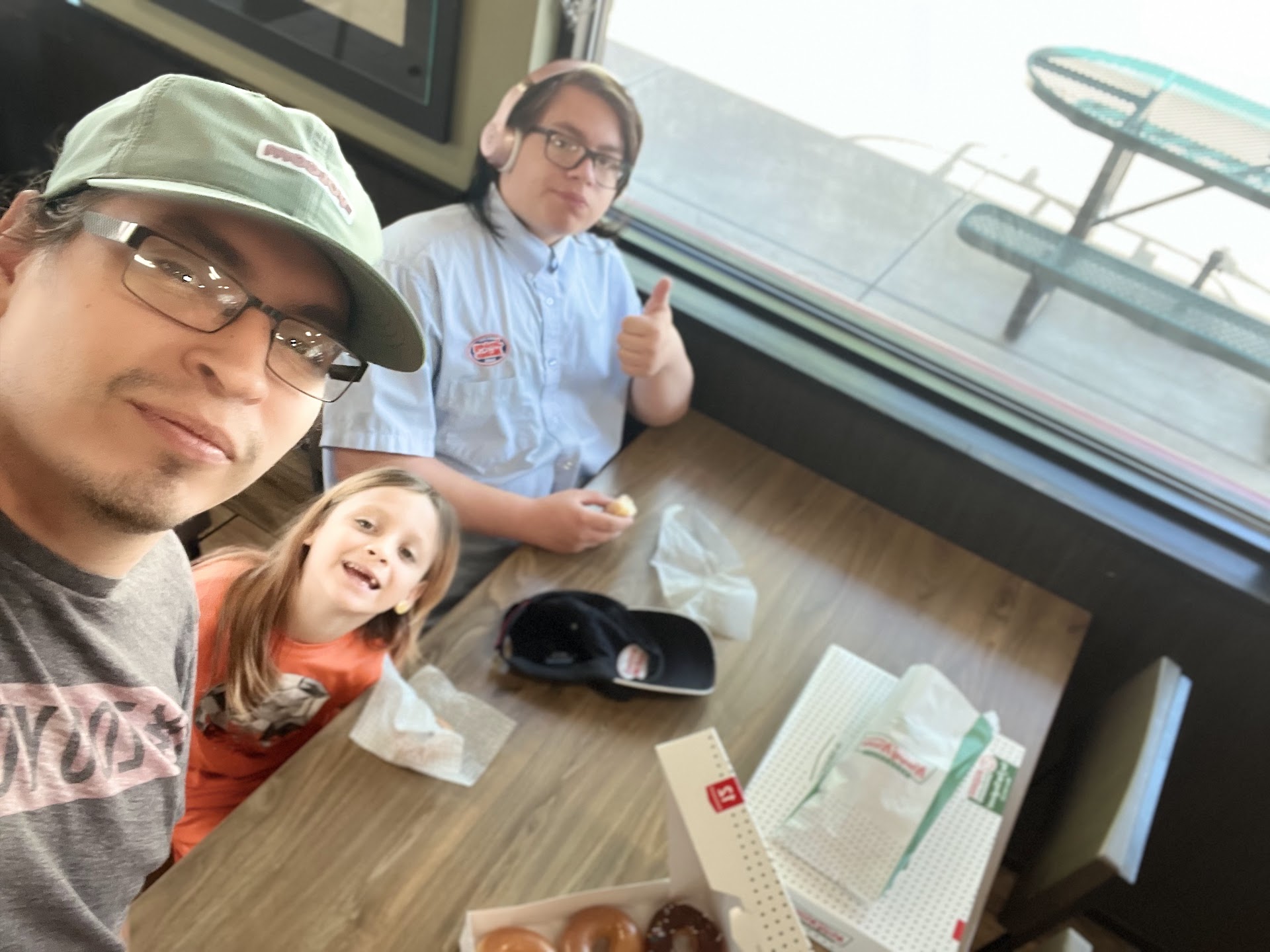 Read moreGot 2 dozen donuts by walk in, and a mocha frappe and was assisted by Zyah I believe. David was backing her up pulling donuts off the line frantically trying to keep up with the crazy amounts of donuts. Zyah was helping drive through customers at the same time as she was helping me. Running back and forth getting change and answering the headset. She requested help from David to help answer the next drive through customer as he gladly hollered definitely! These two kids were on a roll!