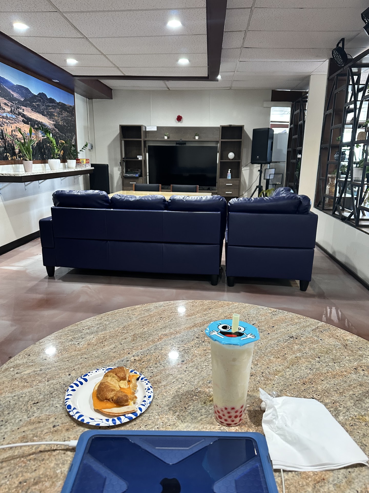 I found this place on a Google search and spent the afternoon doing some computer work. I don't recommend the iced tea as it is not made there but some sort of purchased nastiness. However the cupcake was yummy and everyone buying smoothies.or boba seemed very happy and those drinks looked good. When I'd been there a while, they brought me a water too, without asking. I mentioned I didn't like the tea and she brought me a different kind which I tried to refuse but she insisted. I wasn't up to trying it but took it home (it's sealed) so maybe my kid will like it. Did not see any of the coffee drinks but it was evening when I was there. They obviously have regulars and the place is huge and quiet and super clean. I will be back as it's a great place to get things done and not crazy busy like some of the more popular coffee shops. No more iced tea but I'll try something else next time. Doesn't matter to me as I just really needed a place to work where I couldn't get distracted by either coworkers or pets or...