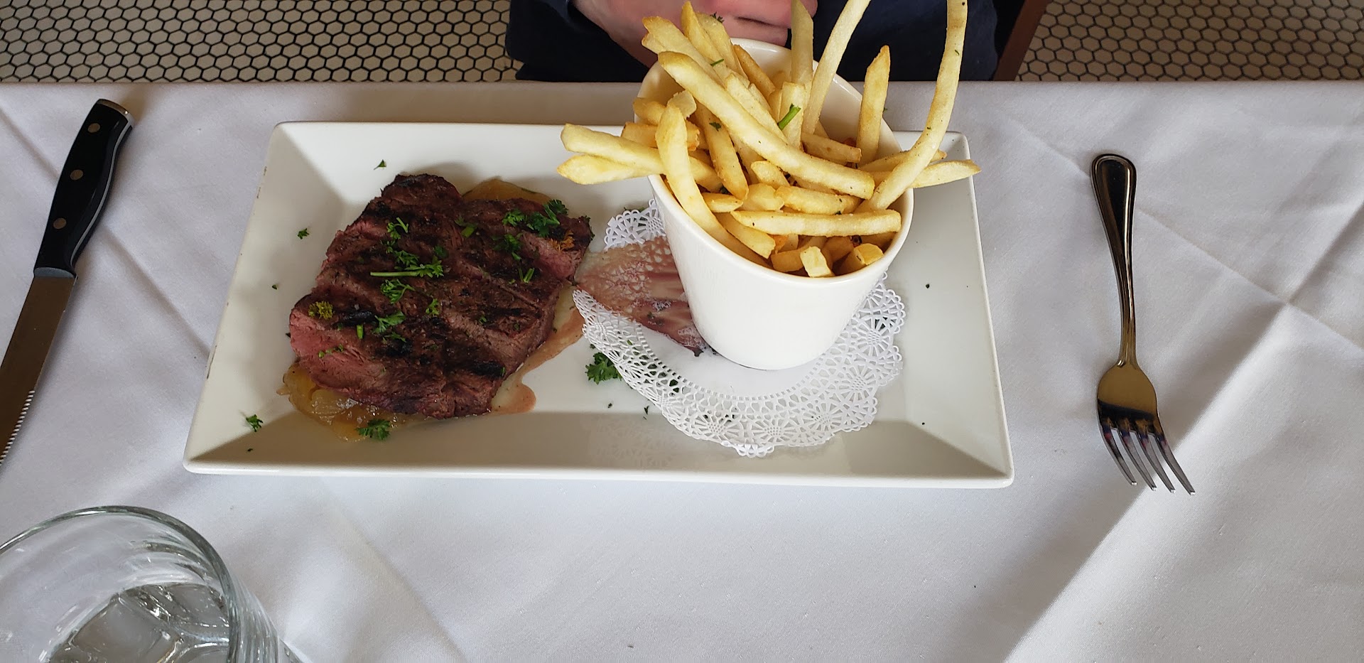 A bit disappointed, or maybe I had high expectations based on other peopleâs reviews. I walked in without a reservation and wasnât welcome, even though the restaurant never filled up its maybe 30 seats. The hostess was nice but obviously poorly trained. I wasnât even properly sitting as she was already asking if I wanted wine. The menu is in French, I speak French and the poor girl had no idea was I was ordering. You donât need to speak French, but at least know your menu. So, I ordered the Soupe a lâOgnion and the Truite Amandine. A few minutes later, the trout is brought, to my surprise. I asked if the soup shouldnât be firstâŠ. and the guy, the only other service person who acted like Maitre Dâ and dining hall manager said the girl never mentioned a soup. Ok, back to square one, and another ten minutes or so before the soup came. It was well presented and tasty, but it seems they rushed it so the gratin wasnât all ready and the actual soup was lukewarm. Ok. Then, for some reason, the waitress had brought a steak knife, so I asked her if she could bring me a fish knife instead. Nope, the knife never came. Then, as I was dine with the fish, which was well made; I asked if I could have a chocolate mousse. The Maitre Dâ replied: âlet me see if I can get you oneâ. Really? So, the kitchen confirmed they had chocolate mousseâŠ.. but after ten minutes, I got tired of waiting and ordered an espresso (very well served, btw). So, with the coffee came the check, and the mousse was in it. Oh, surprise!, âit was never brought to you?â⊠Wine was fine, soup was lukewarm, trout was fine, coffee was good⊠but canât report on the mousse they might have been keeping for someone else? Serious service issues though. Sad. Donât feel tempted to return, even though the menu is...