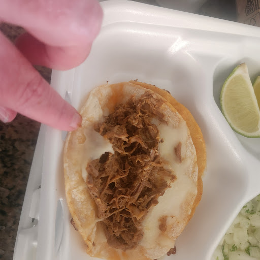 Beans and rice were good but one of my tacos didn’t even have meat I got the birra taco plate with 3 taco very upset pay for a corn tortilla with nothing in it but a tiny bit of white cheese they forgot to put meat did they do it on purpose or accidentally and my daughter paid cash I’ll never forget back here again I’ll stick to ALEX BIRRA TACO de Tijuana at least the put a lot of meat and cheese and there price are better for birra tacos the only reason I eat here is bc they were close uhh next time I will just wait … do you want some good tacos? Go to Alex birra de Tijuana you won’t regret it one taco is filled with lots of meat the consime is tasty and you get full … the picture is one taco hardly noo meat for the price nah not cool …. The taco on left from Alex that de Tijuana the taco that has meat the one that had no meat I just gave it to the kids ! But still not good they forgot to put meat in one of my paid...