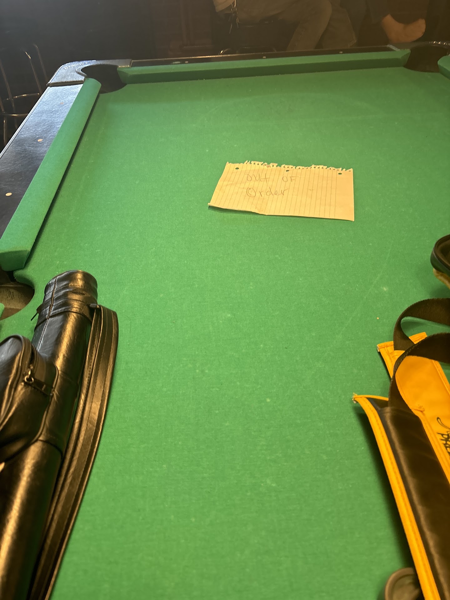 Read moreHere we go again - an owner who is never present and who apparently cares so little about the regular crowd that one pool table has been broken for at least two months, the other for a week, and the third now just takes quarters (and likely will soon be full up) because she can’t be bothered to come get our dollar bills out of the collection box until this happens - and even then it takes like a week. Just pay someone to fix them already and give the keys to the bartenders like literally every other bar I’ve been to across the country. And, all of the above happens reg.u.lar.ly. Watched at least 30 people walk in and immediately out the last two days. Let’s be clear - there are several nights a week that the pool playing regulars and our non-playing friends are 50-75% of the business for several hours of the night. This pattern is simply disrespectful and so easy to fix that it feels purposeful at worst, lazy in the middle, and just cheapskate at best. As a group of 25-30 regular players here, we bring several thousands of dollars to this bar every month. We invite people we play with in league to here and now are embarrassed to do so. We hold regular tournaments here and now don’t think we can because we don’t trust the tables.