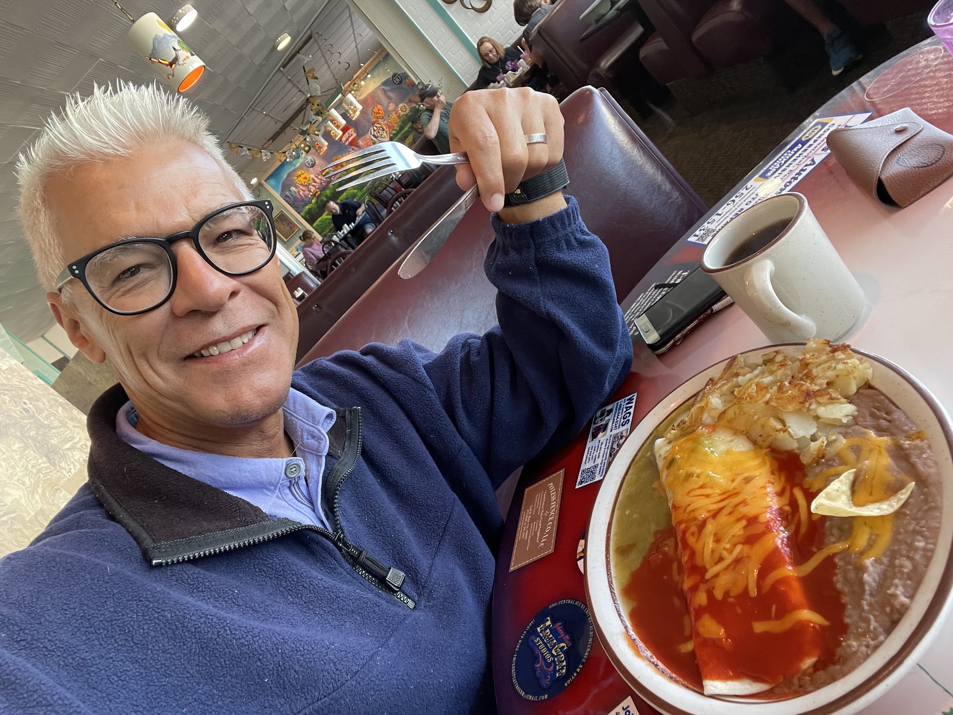 Rhonda and I have got into the habit of going to our local breakfast restaurant which is about a mile from our house. The name of the place is called Loyola’s, and it sits right on old Route 66 or Central Avenue. The place has been there for eons, and the décor probably hasn’t changed one bit from back when Route 66 was the main route through the USA. Some people may recognize Loyola’s from the TV shows “Breaking Bad” or “Better Call Saul” as it was Mike Ehrmantraut’s (actor Jonathan Banks) favorite place to eat in the show (much was filmed there plus he also went there to eat after filming).