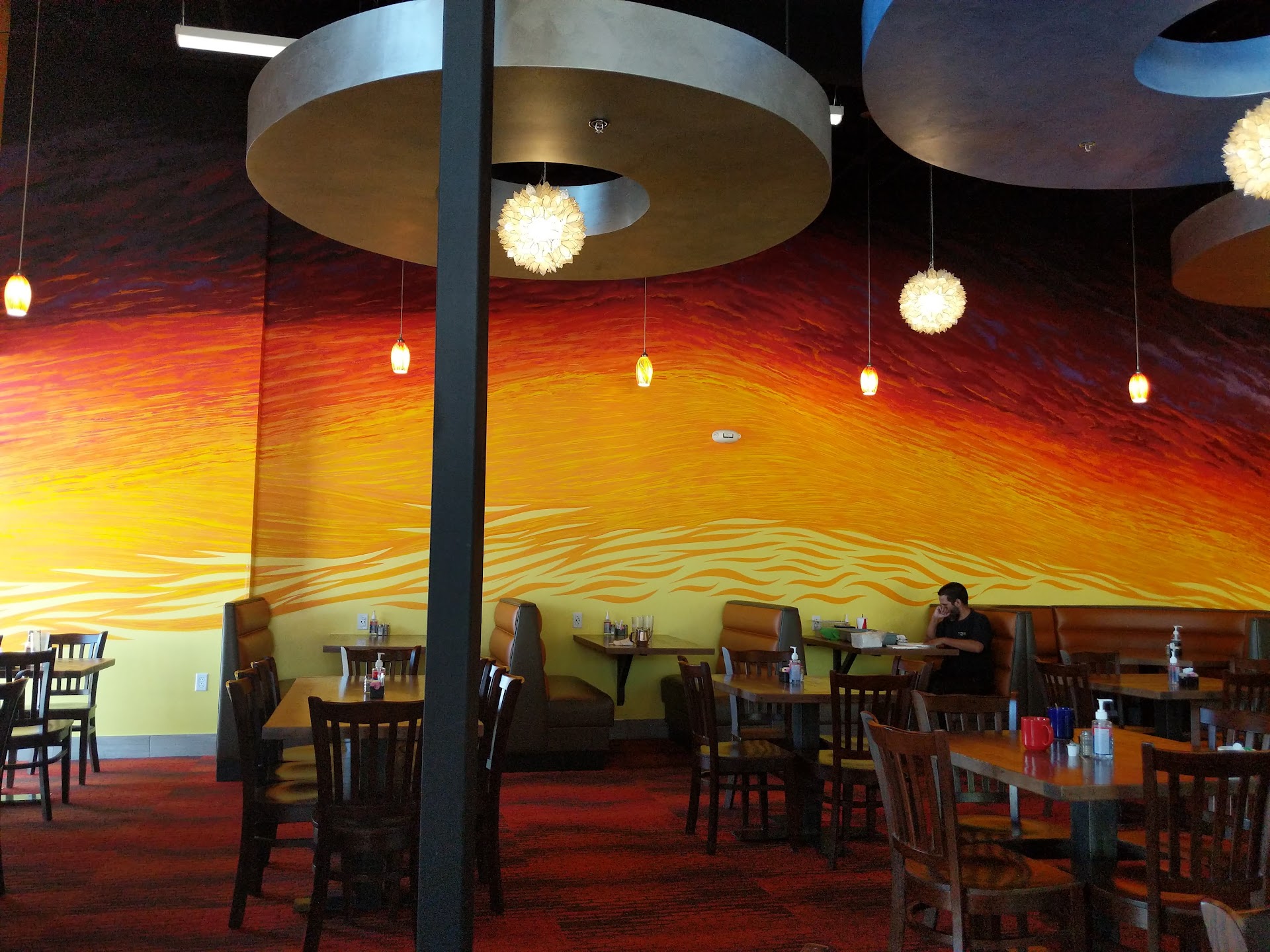 I had a cinnamon cardimon latte which was amazing! I highly recommend it. 👌 also we ordered a bunch of huevos rancheros with either avocado, bacon or sausage. They serve them on a bed of tortillas. With either green or red hot sauce. So both are spicy but the green sauce is similar to a molcajete salsa, and the red is with dry red chili. And both are amazing for my liking. Family thought it was a bit too spicy so if spice isn't your thing . Best to get it on the side. Which is what some of us did. You can add it to your plate little by little or dump it all to ur liking. Flavor for this dish 10/10. I also ordered a sausage burrito, which comes with a side of sauce . Didn't have hashbrowns inside thr burrito. Though, I thought I read it on the menu. But ordered a side of hash so we had it like that. No worries. Then I had the south west chicken salad. And that salad was bomb! Salad was fresh. Dressing was just about enough. And I added some avocado to it. So flavorful! We got regular coffee and orange juice, and a mocha latte. Good drinks. For desert we ordered a chocolate eclair, and cherry strudel. 🍒 oh it was good. Yuuup.