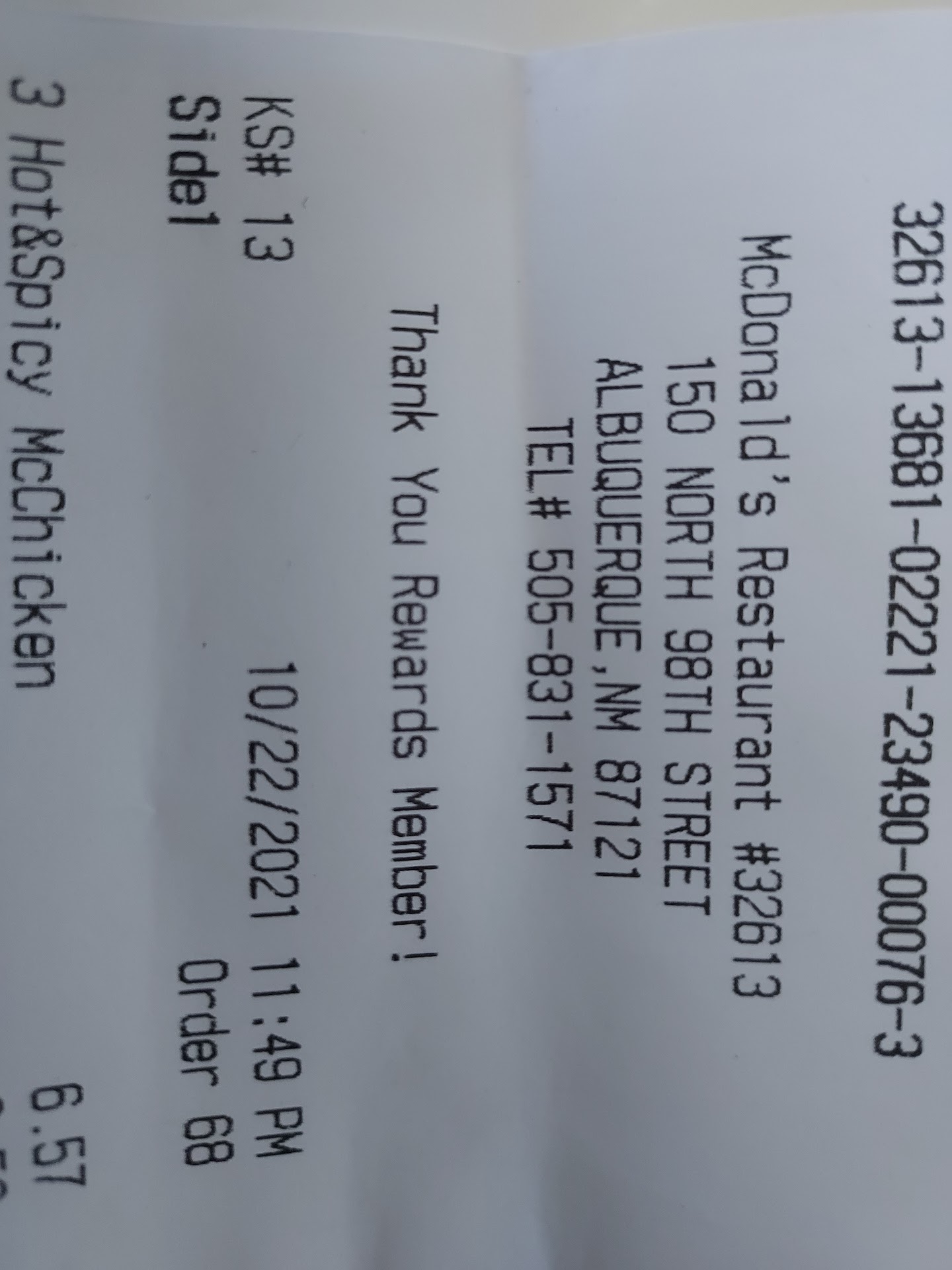 Read more12/02/2023 âââ 12/03/2023 12:08 AM Hate to say this, but Iâm sure I just got food poisoning. Mind you Iâm not targeting this place at all, itâs just within past 24 hours this is the only place Iâve had to eat since Iâve been traveling from California to Colorado. Literally havenât had anything else. I ordered 2 hot and spicy mcchickens and 2 McDoubles, medium fry and medium coke then went to my hotel room to rest up for the night. The hot n spicy mcchickenâs tasted a little awkward last night but I continued cause again, havenât had anything to eat, this was the only place that was open and I love McDonaldâs. This morning (12/3 @ 12:08AM) Iâve literally puked out everything Iâve tried to drink or eat, got stomach pains, and explosive you know that & I canât go to sleep till it passes (itâs that bad). Either this place needs to reevaluate their cooks, or needs to reevaluate its stock cause this is not acceptable. And yes Iâm still in pain rn and yes I literally pushed out that last nearly 8 hour drive from Albuquerque to Fort Collins on this amount of pain....