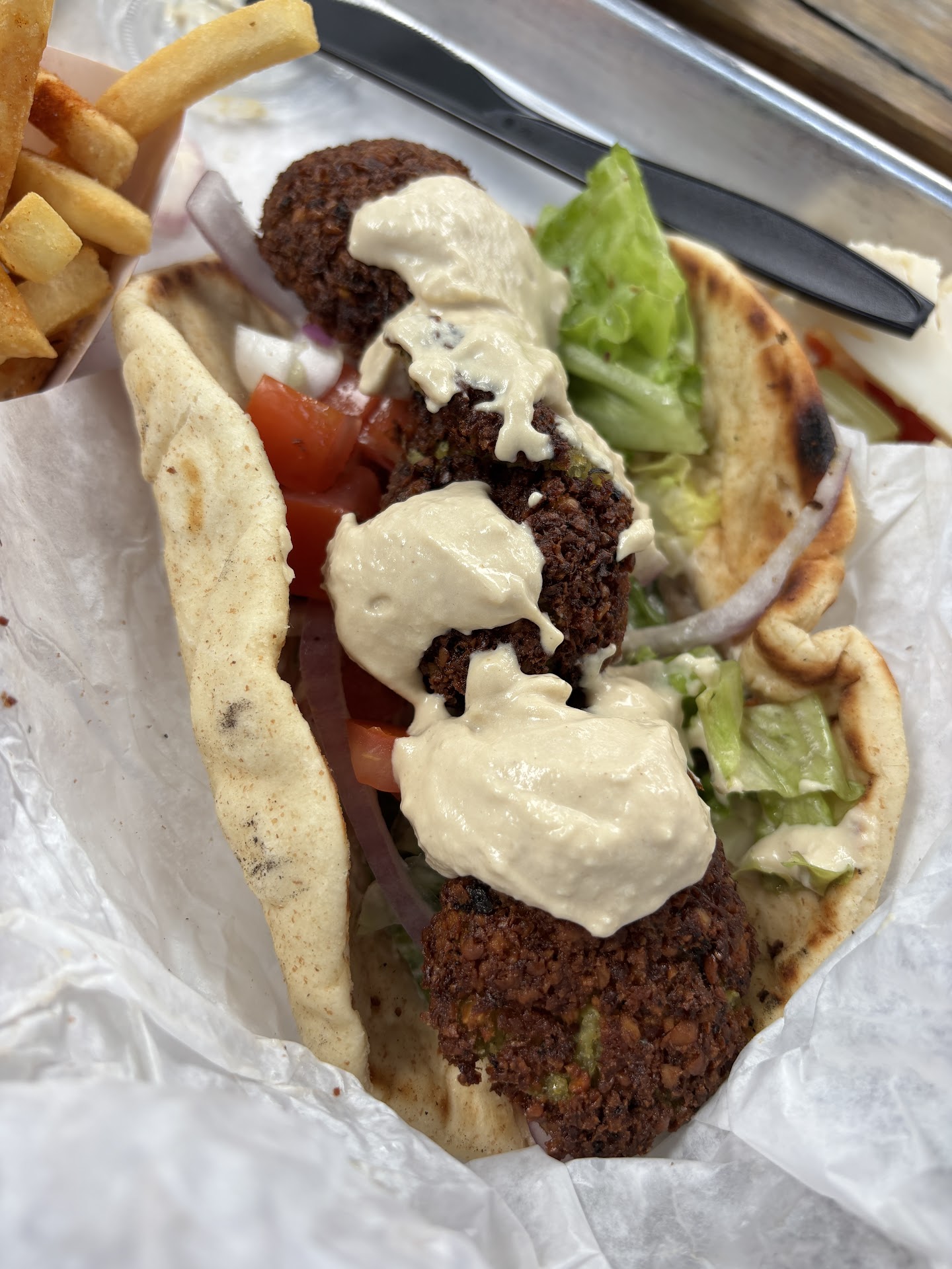 It’s rare that we find a great Mediterranean spot in the southwest, but man this hit the spot! The lamb gyro was crafted with meat right off the hot rotating shawarma stick, and the rice was so fragrant and flavorful! They include some grilled jalapeños that give this a southwest flair that nods to this location’s locals and introduced an enticing flavor profile for your palate. The tzatziki featured fresh dill, and it was the right creaminess for the gyro I ended up crafting. I snagged a bite of the fried falafel and my goodness that authentic Mediterranean flavor came thruuu. Pita was baked to perfection and the hummus was creamed to an amazing consistency. 10/10, will...