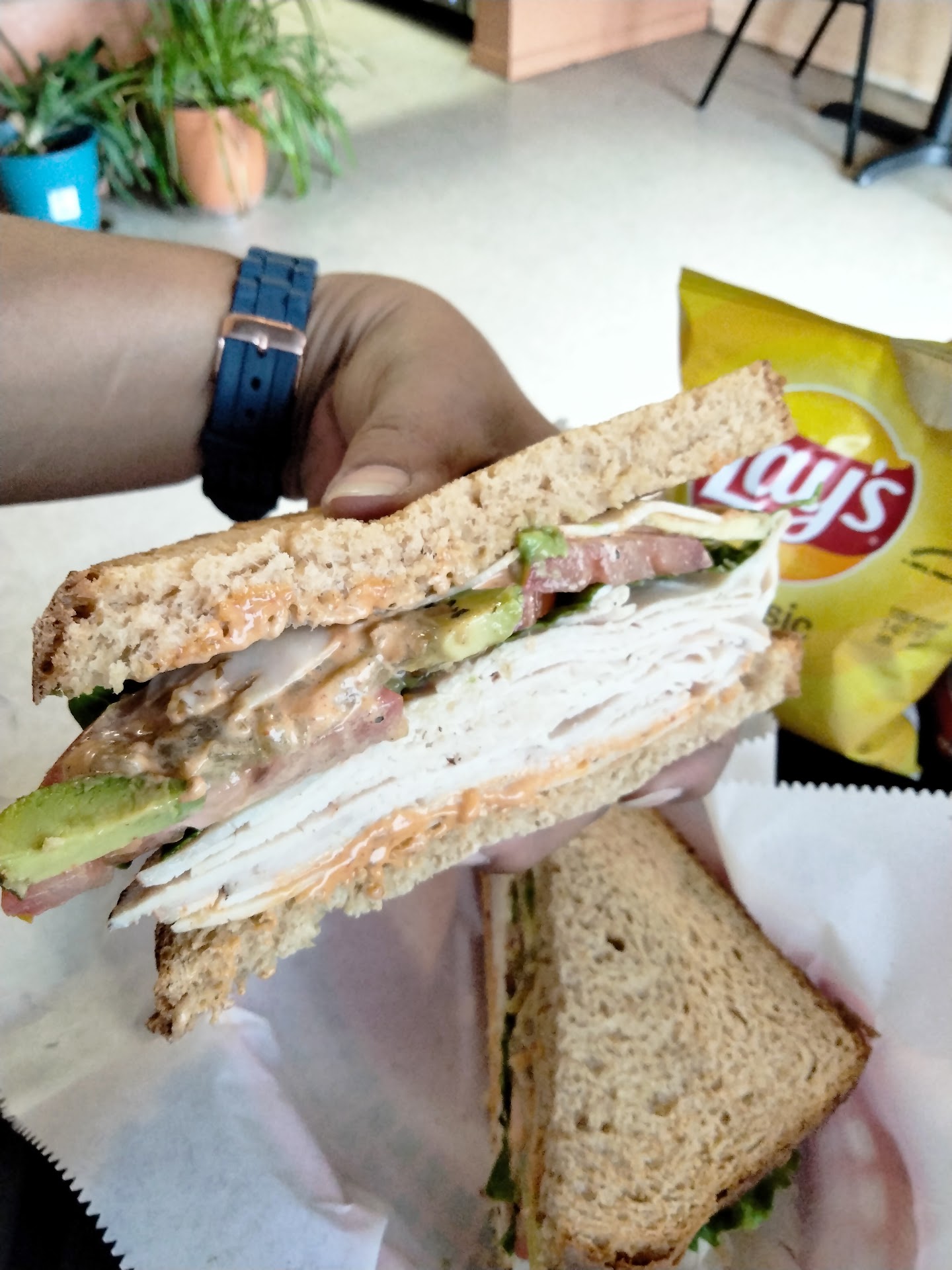 Read moreStopped in today for a 10" turkey and cheese sub, a cup of green chili chicken soup and a photo/chicken salad sub but instead got a cup of potato chicken salad. Misunderstanding....no big deal.
