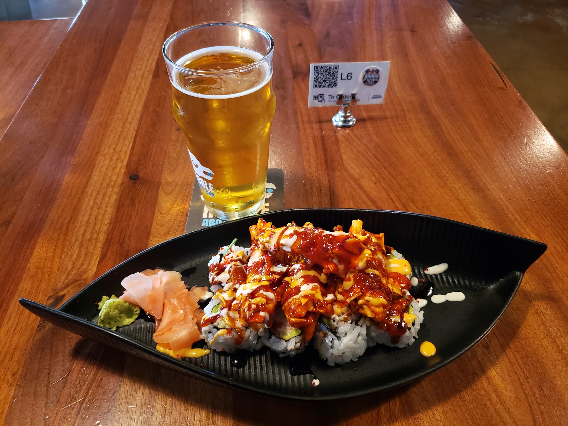 When my bf and I first came here we weren't really sure what to expect. The reviews were great but we'd never been to the taproom before and it was confusing finding the place. But the sushi was on point and the sauces were so good. They had a nice kick of spice and even though we ordered four rolls they were all out at once within a small amount of time. I'm not used to that. I cannot remember some of the names of the rolls we tried but the one with jalapeno and no rice was so weird and so freaking delicious. I stole more than my fair share from my boyfriends plate when he wasn't looking. It was that good. Also, it was really cool being able to order a beer from the taproom while enjoying sushi. The rita beer was the first beer I've ever actually enjoyed as it was very much like a cider and I hate the taste of most beer. I didn't think it would pair as nicely with my sushi but I was again very pleasantly surprised. I will definitely be coming back. But word to the wise, it can be kinda loud so maybe not the best date location. But if you don't mind talking over the roar of a full room of families and friends alike, I highly...
