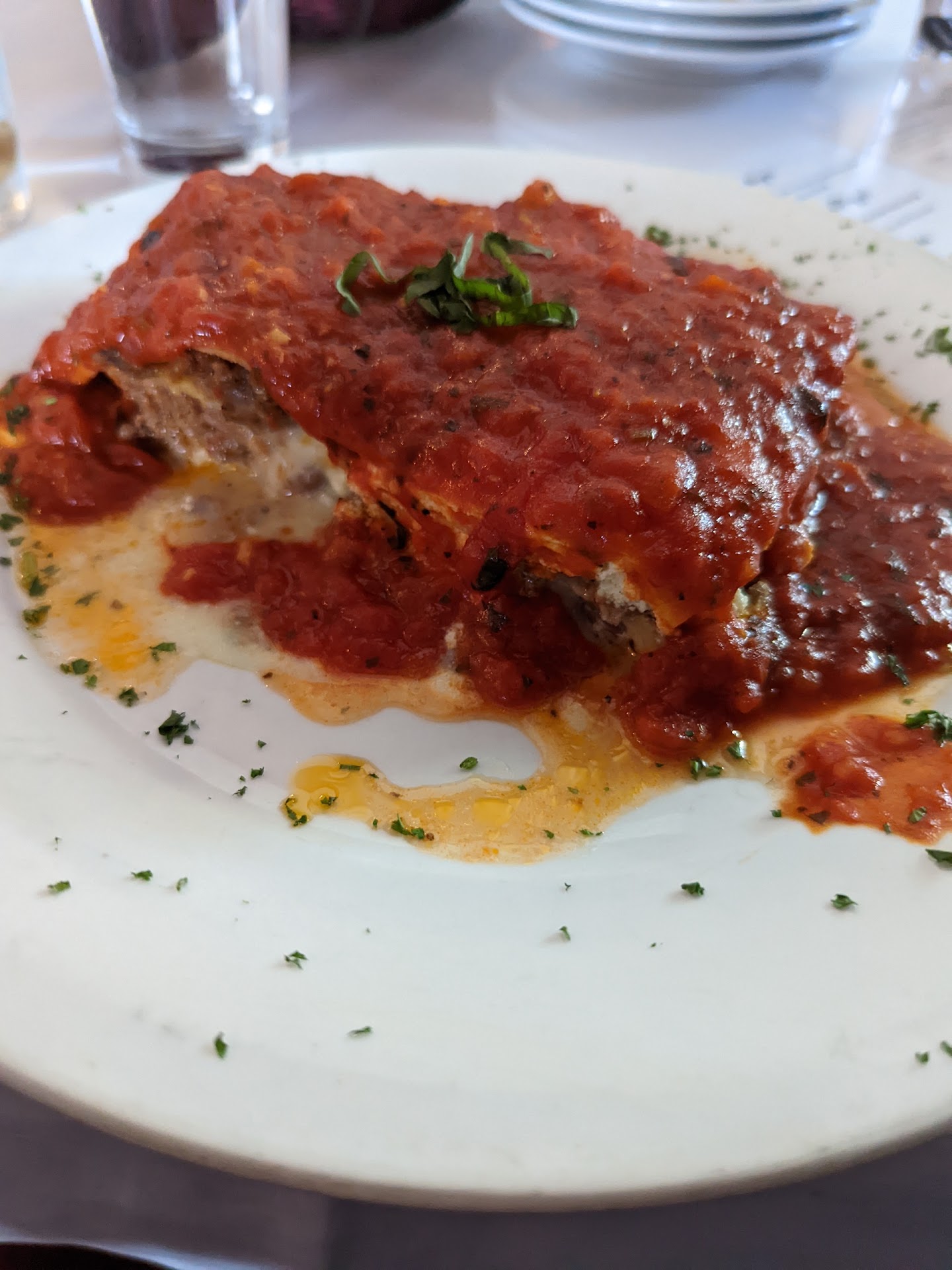 Read moreMinestrone soup was fabulous! Best we have had in years. Bread was wonderful. Atmosphere and most of the staff was exceptional. Husband ordered the meat and cheese lasagna and I the chicken alfredo. We both wanted the smaller portion meals. I clearly thought that I pointed that out on the menu when we ordered. Again, let me point out that the minestrone was wonderful. Husband's lasagna was okay and didn't seem like it was the "large" portion although the sauce it was swimming in was more than ample. The chicken alfredo was all globbed together, much like a baked spaghetti or baked ziti. Separating the pasta strands from one another was difficult. It was one big clump of pasta. The alfredo sauce was not creamy at all. Of the 3 to 4 bites that I consumed the pasta was fresh, but had no flavor. The chicken was good but was the only thing I consumed. The only flavor was the cheese on top and that wasn't the flavor I was seeking. Shared this info with waitress and she offered more sauce or something else. I declined both offers. More sauce wouldn't unclump the glob. I didn't see anything else on the menu that I wanted to wait on, after all I wanted to eat at the same time as my husband. I appreciated the offer but I was past the point of wanting to continue with my meal. We we offered a dessert at no charge to offset the awful pasta. I wasn't interested but husband selected a lemon pudding cake. It was beautiful. Of the bite I tried, I did not like it. Grainy texture. Wouldn't recommend it. Finally received our check, at the register we realized we were charged for the larger size meal. At that point I just wanted out of there. 20+ dollars for each meal. Boy that felt slim shady. Upcharged. What a bummer. I am so disappointed and I paid for a larger unedible meal than I ordered. While the minestrone was wonderful, I am really upset with the rest of...