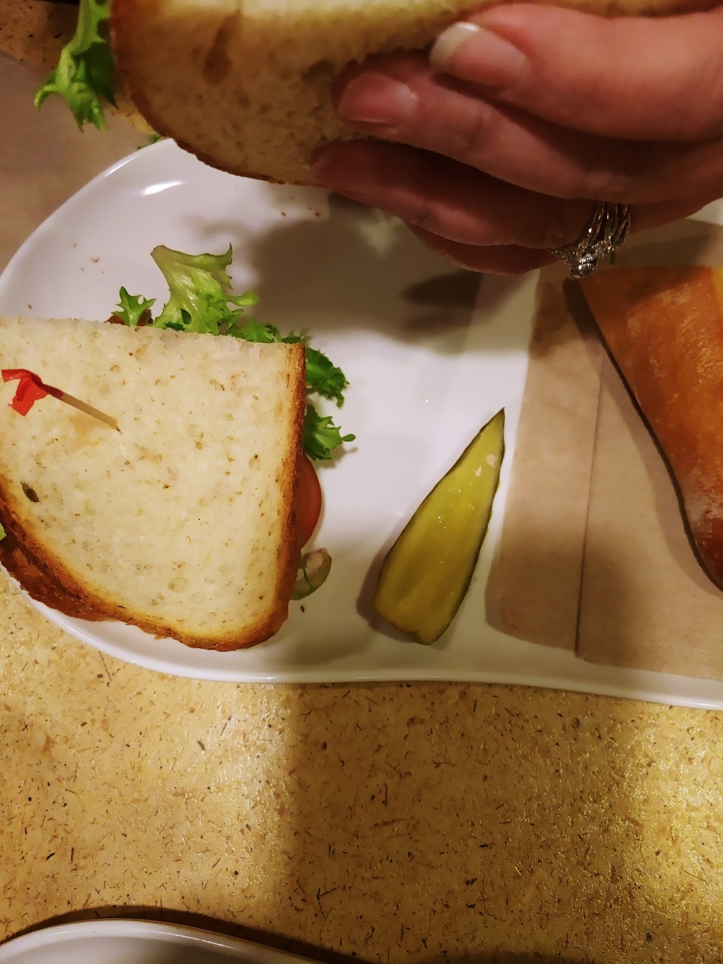 I come here about once a month. Lately things have been slipping. Last month I ordered a half sandwich, but was charged for a full sandwich. They offered to refund me for the half I didn't order. However, what they actually did was charge me for another half and refund that. This wasn't clear until my credit card bill arrived later. This month I ordered a You Pick Two through rapid pickup to go. My salad box was only half full and missing croutons. My soup was maybe 2/3 full and they gave me only a fork and knife, no spoon. I didn't realize this until I was back at my hotel. So I drank my soup. The order also took much longer than usual. I would also note that at dinner time in recent visits, they have run out of tuna salad and all sides other than apples - never experienced this at...