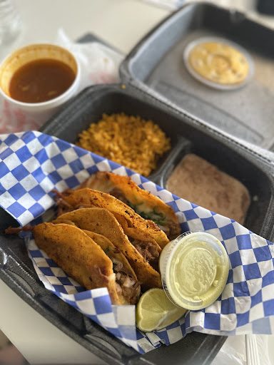 WellâŠI was really excited about trying this place but I ended up being let down. I got the quesabirria tacos. Preferred to order inside because when I tried ordering online it asked me what meat to choose and birria meat wasnât an option so it confused me. I had it with rice and beans, came with consume, salsa, and a lime. I first was surprised that no onions or cilantro came with it. Kind of a bummer because that really elevates the consume.