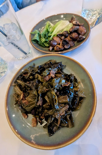 The table got the bok choy and the collard greens to share. I enjoyed the collard greens, and the table liked the mushrooms that came with the bok choy, but the bok choy itself was pretty plain. My wife and I both ordered wine and those were great.