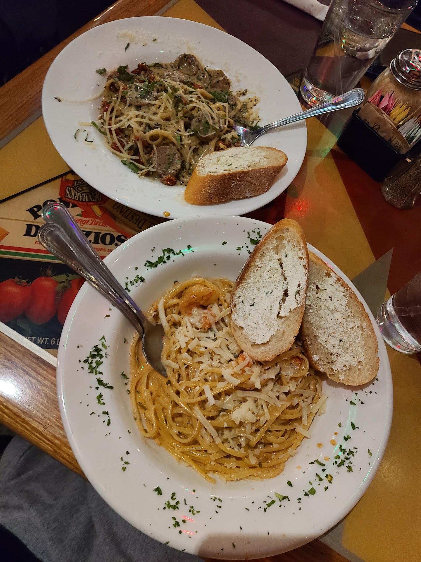 In order cited here are the impressions of the mess that came out of what I'm assuming was a kitchen. The salad was served overflowing the plate, so much so, that on the first bite a large portion fell off the plate into my wife's lap. The lettuces were wilted, tomatoes mushy, croutons stale and there was so much cheese on the plate that it was ended up being an item of humor at our table. The pizzas were just terrible, plain terrible. I think I have had comparable microwave pizza. The pizza I ordered had canned salmon on it that literally smelled like three day old socks. The pastas were microwaved, without a doubt. One bowl of noodles came out of the kitchen so piping hot that I was actually waiting for the bowl to melt right there on the table. We had the spaghetti and meatballs delivered to one of our family members and she commented on how the meatball tasted like nothing but pepper, we all tasted it, and yes it was heavily overseasond with pepper. We didn't even bring them home to our dogs. The shrimp in another pasta we ordered the "Aragosta", were over cooked to a stiff rubbery consistently and tasted like what I assume it would be like trying to eat a wad of silly putty. In addition to that, the pasta sauce which accompanied the shrimp, was completely unpalatable and tasted similar to the three day old socks I previously cited. With all the wonderful food options the great city of Albuquerque has to offer, I'd suggest you stay far, far away from this place. Unless you are looking to flush your hard earned money down the toilet, along with the food that...