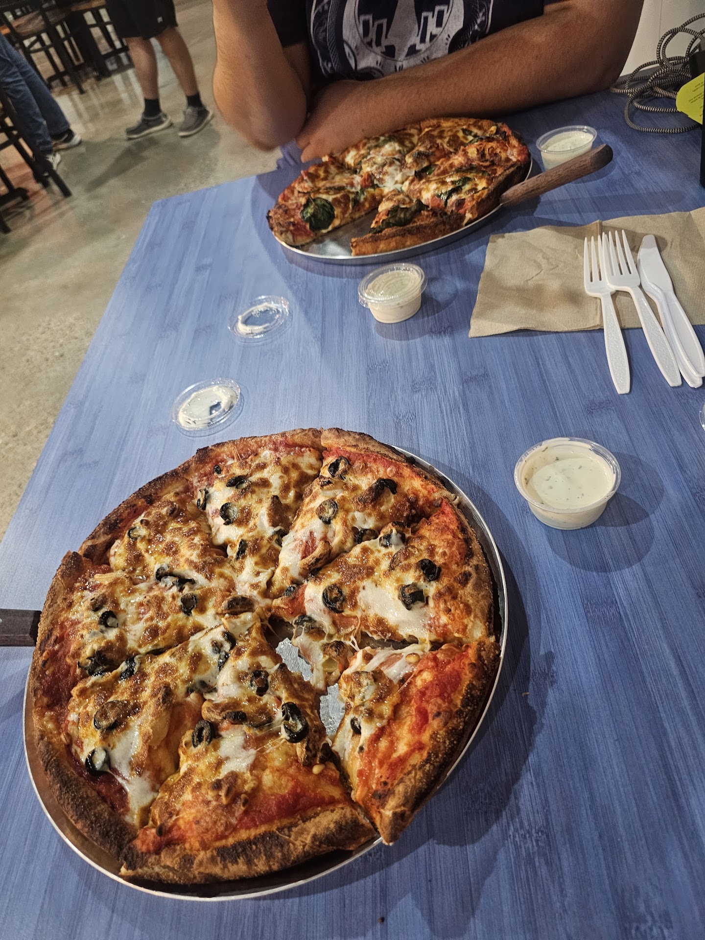 We have ordered online and dined in at this new location and have had a blast with it. Last time, we sat down and played Munchkin while we waited for our food to be made. We could have borrowed any number of games from their expansive game library, but we were set on Munchkin, haha. About halfway through, the food arrived hot and delicious as always. The staff is always very cautious to work around the game space as they are able so as to not disrupt the game. No placing pizzas on the middle of your board game or using your cards as coasters!