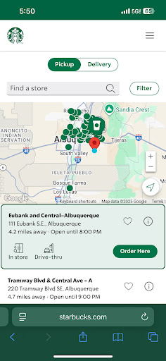 Read moreI do enjoy a nice hot cup of some Starbucks coffee. I got turned on to it as a college student, and it is one of the addictions that I do not mind so much. I have an extremely complicated order, and 8 out of 10 times they do get it right. It is a pretty complicated order, and so and they get it right it is pretty good. They could however, do has good of a job on cleaning their tables. Albuquerque restaurants seem to not quite understand how important a clean table is to a dining experience. Other than that I would highly recommend this Starbucks. I usually do drive-thru now because, they do not clean their tables. Also, the dining floor is somewhat crowded due to its small size. On a busy day it could be pretty loud in there. I hope you enjoy your coffee here as much as I do. They do make a mean cup of joe. The coffee I order is usually the darkest strongest roast coffee with three shots of espresso, one shot of vanilla, one shot of chocolate, one shot of caramel, mix de Cool Whip into the coffee, add7 sugar packets, and stir well. I called this one dead man walking because it has enough caffeine, and enough sugar to Wake the Dead. Usually, when I get out of school super late in the evening I am dead man walking. This coffee usually gives me just enough energy to make it home, then, the caffeine crash adds to my already tired fatigue self. I crashed that much harder when I finally get back...