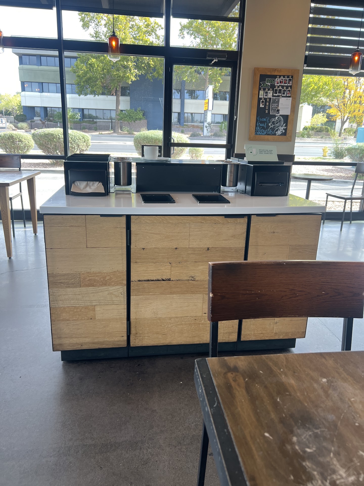 My Personal opinion of places like this are along the "avoid this, and places like this, at all costs" Line. But in the interest of commerce , and My belief in giving it straight to my fellow denizens who might actualy need a heads up, i will be objective in my consideration, in contrast to the obtuse attitudes and adverse aires, and racially biased culture That come with the main aim of the franchise: wealth extraction, hidden behind overpriced coffee esspresso latte and thier related accessories and Trinkets, on the other side of the counter local employees are offered disparate hours at low wages With no hope of any meaningful kind of wellness plan, any meaningfull value added to thier resume, for accepting a job offer from the seattle based strain of corporate cancer cell. But i digress, lets get on to the review, Situated just a stanky leg wobble south of the.San.mateo blvd /Montgomery blvd Intersection in the Southeast extreme of The Albertsons Market parking lot. This particular Starbucks is a new construction sitting on top of the old demolished panchos restraunt site. My first impression of its outside appearance is the parking area and drive thru, the outside patio is it is kept. Quite clean and swept. As are the.Windows crystal clear, however; any welcoming to or wayfinding signage as to the Lavatories Location is conspicuously absent among the interior accoutrements designed to filter to the menu. The Interior of this location is clean as a whistle..and many the employees are helpful and cheerful. I did have 2 seperate encounters with a rushed distracted and sloppy mid worker and an snippy precocious barista wannabe in a manager who was peobably just having a bad day ...with that said...both times my large frozen caramel cafe machiaotto was a sublimely decadent.and satisfying imbibement I guiltily enjoyed lamenting only its overpriced brain freeze the Fake Bourgeoisie of burque enjoy on...