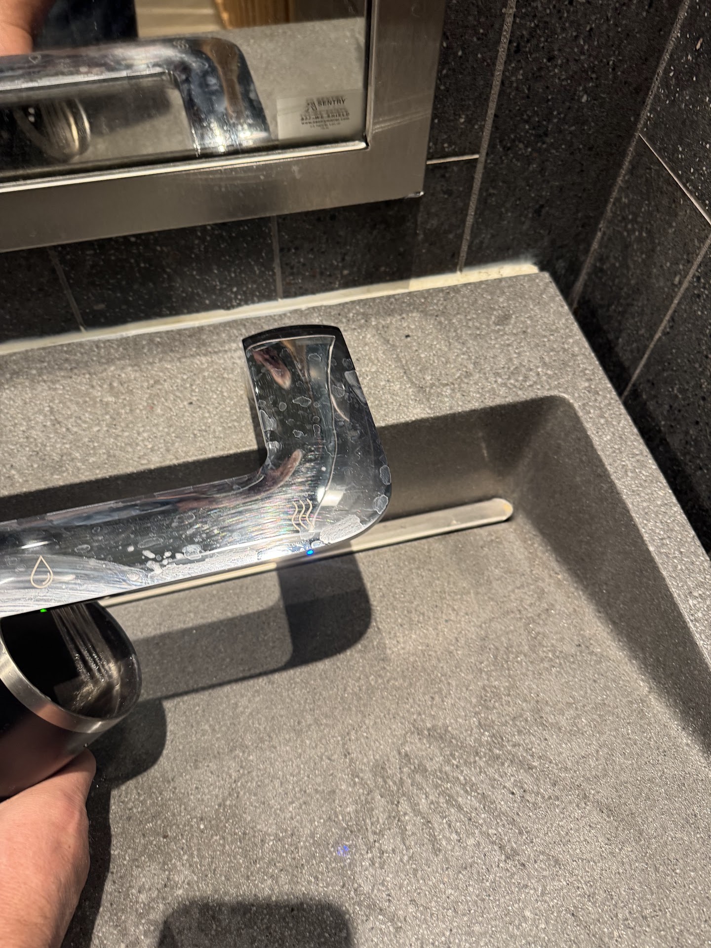 if you have been driving a long time and need to clean out your cup, know that it is difficult to do so in this type of sink. so either bring in a smaller cup, or carry water in your car to rinse your coffee cup out with, or angle larger travel mugs. i got the job done, though i’d prefer one tall spigot to rinse out my mug with. that’s just a personal preference, so i’m still giving perfect five stars.
